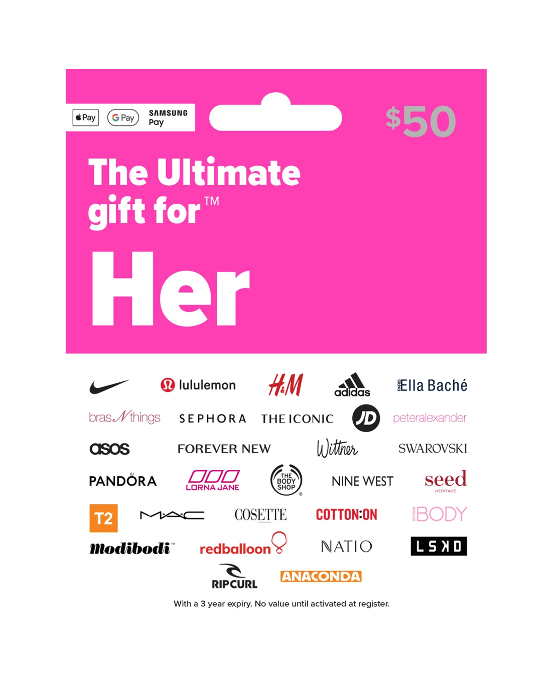 - Note: With a 3-year expiry. No value until activated at a register