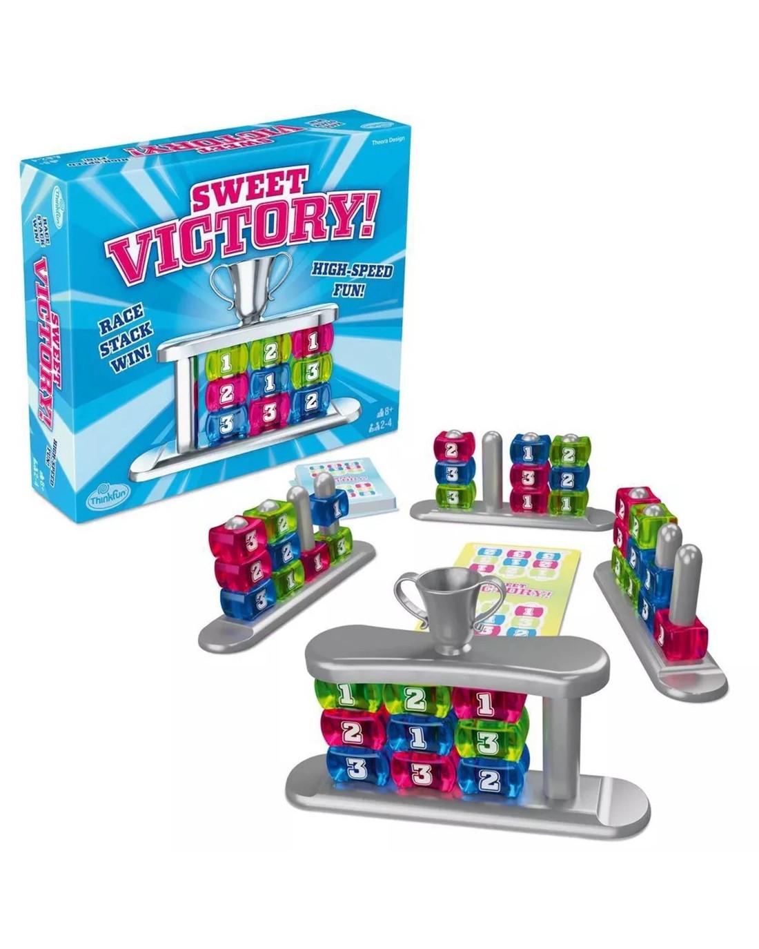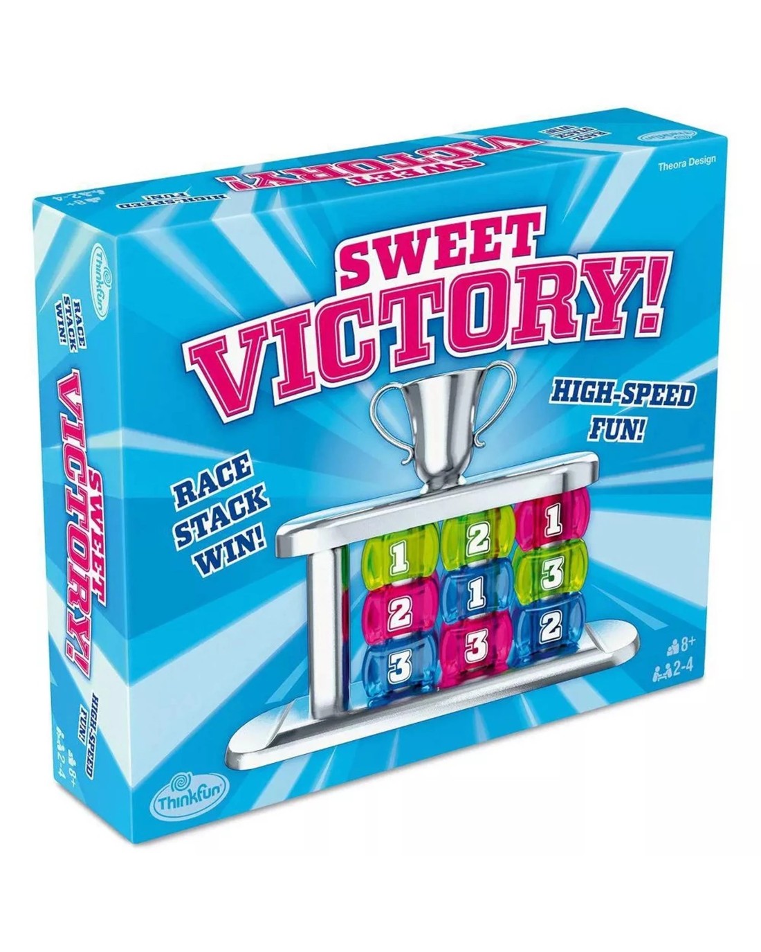ThinkFun Sweet Victory takes hand eye coordination to the next level! Race your friends and family to make the match the fastest!In Sweet Victory, everyone starts with numbers aligned on each peg. And once the card is flipped, race to arrange the numbers in the correct order. You can only use one hand and the first to place the Trophy top onto their piece is the winner! But wait, that's just round 1. Play through 12 lightning fast rounds and the person with the most points wins! Perfect for friends and family game time. Take strategic thinking into the fast lane with Sweet Victory. Arrange the numbers and claim your trophy! Ages: 8 + | Players: 2 - 4