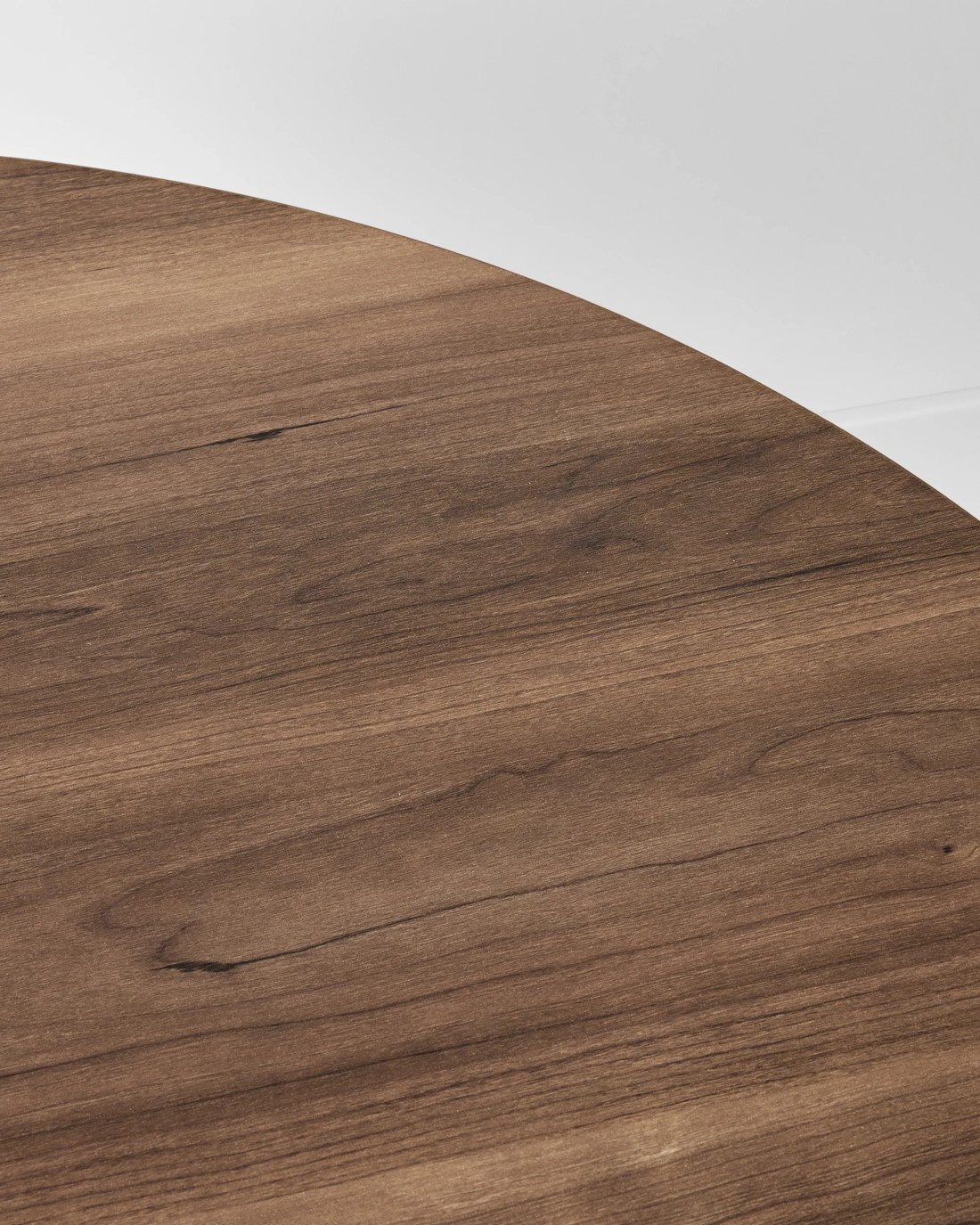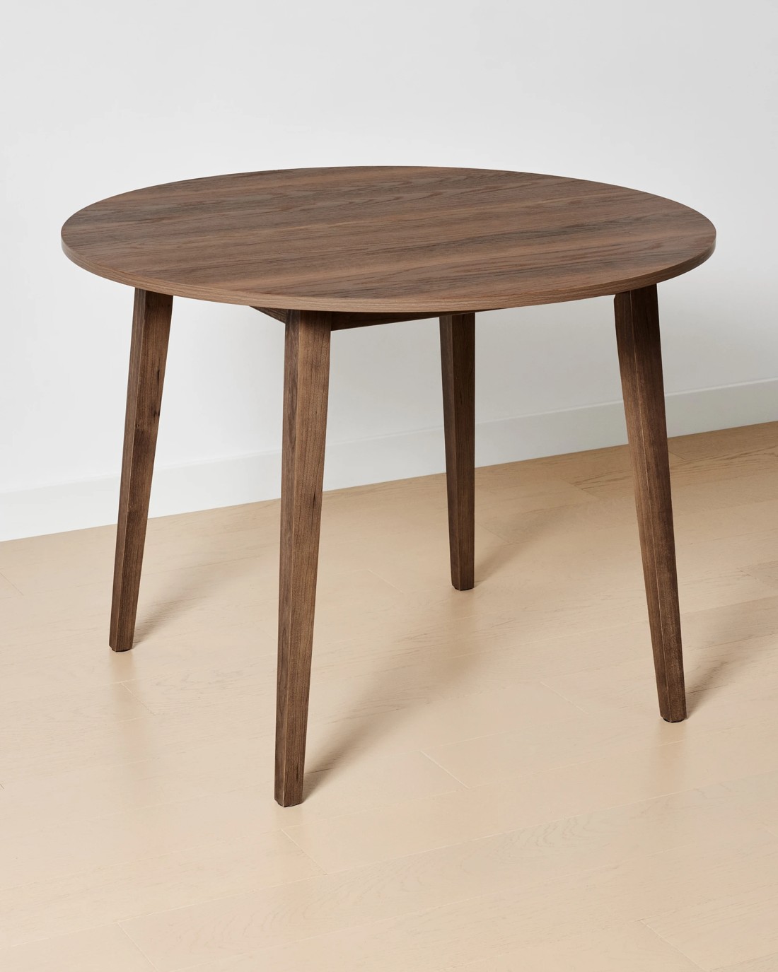 The Thorne Dining Table, with a chic walnut look finish, brings warmth and charm to your dining space, making it perfect for everyday meals and intimate gatherings. Featuring a timeless round design, this table complements minimalist, modern or classic decor.