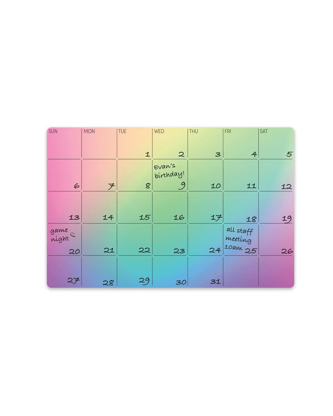 Use this Three By Three Silicone Monthly Planner to map out your month's appointments, family dinners, chores, and parties. It is non-scratching, removable, and reusable with a dry-erase surface so you can write on and wipe off. For an elevated system, stack a few above and below to schedule several months at a time.