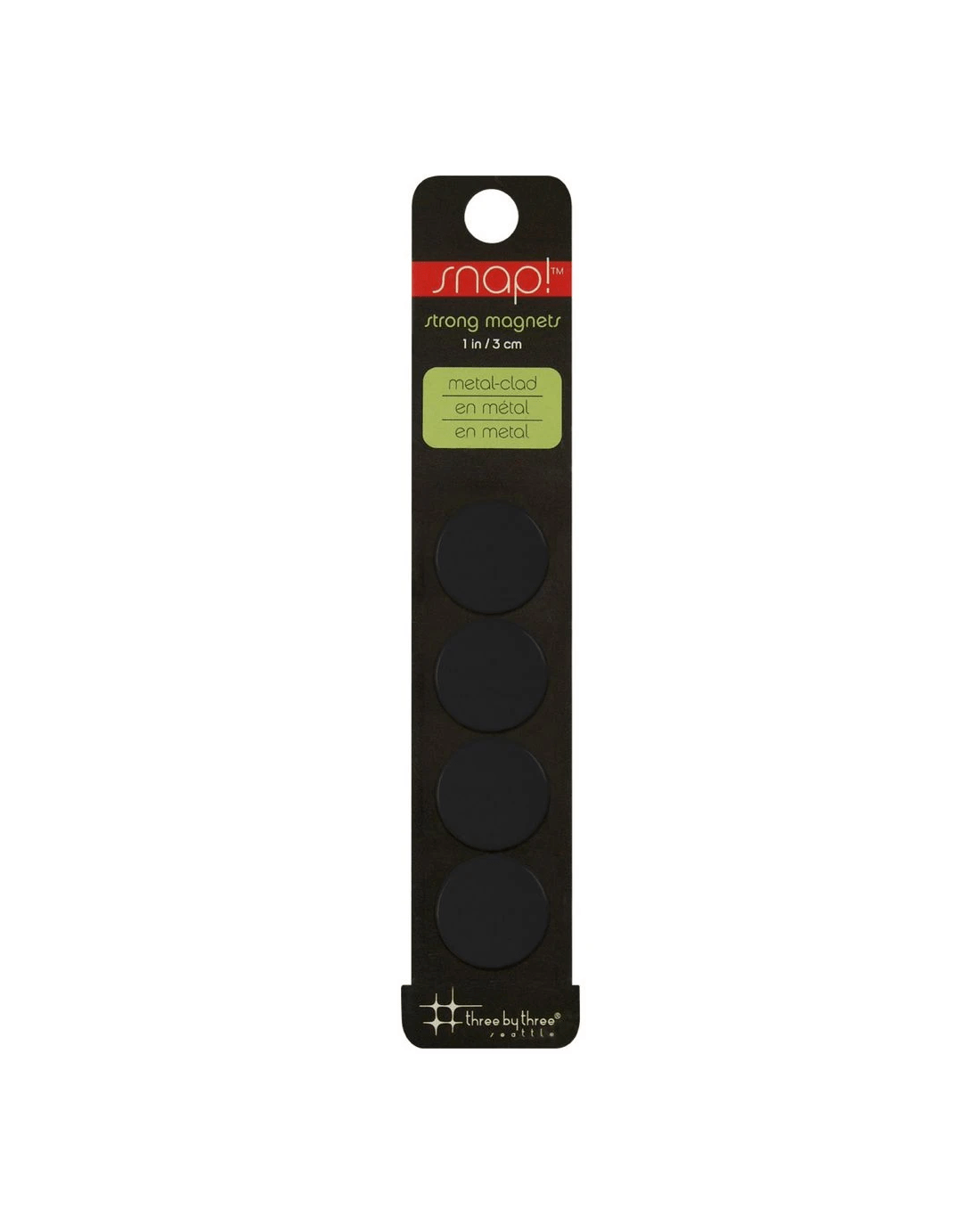 Sold by OfficeworksThree By Three Snap! Strong Small Magnets Black 4 Pack