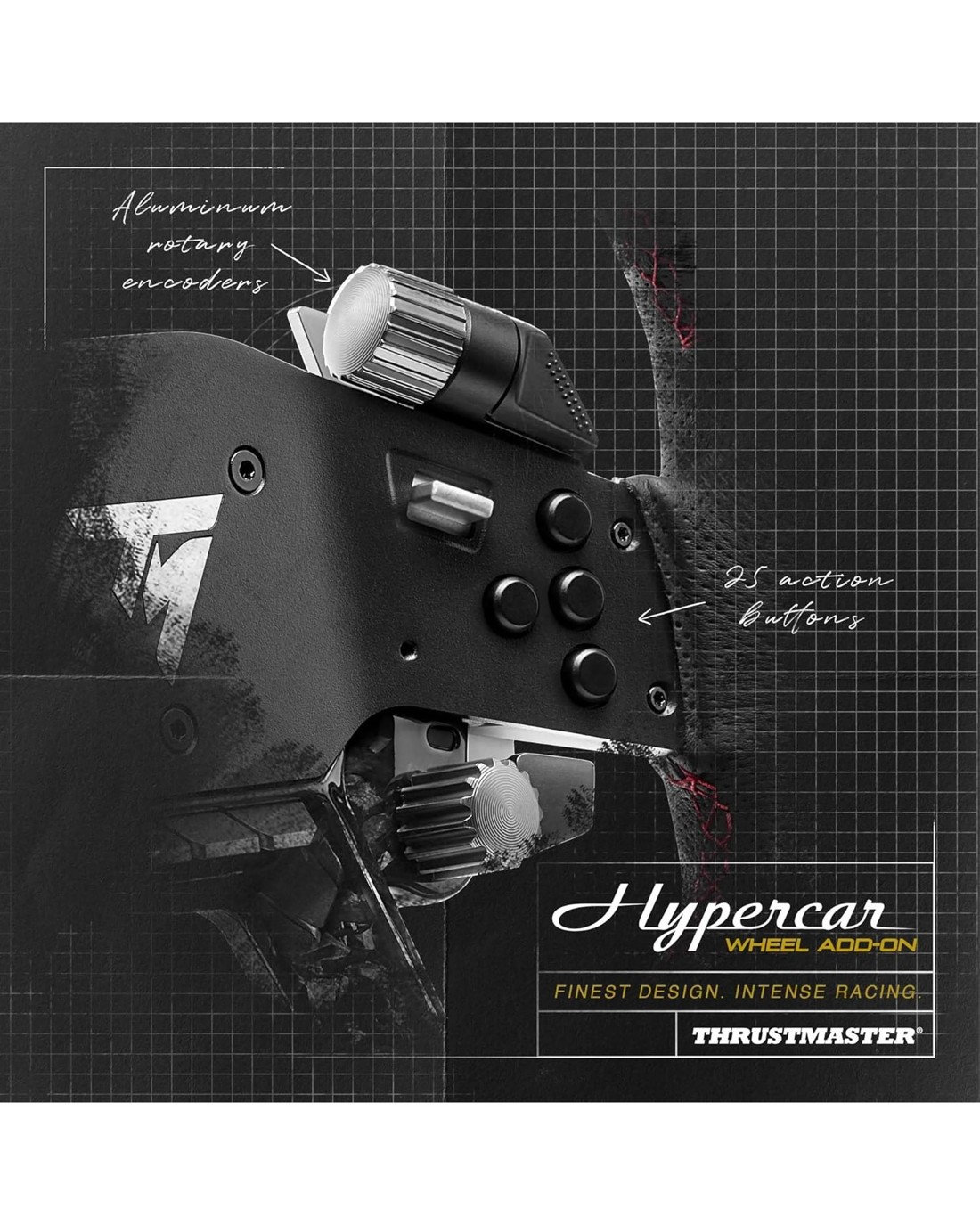 - EQUIPPED FOR PERFORMANCE Hypercar Wheel Add-On features a comprehensive, ergonomic interface designed to satisfy the most demanding race drivers. There are 2 user-configurable LEDs able to display race information, and 25 action buttons (including 4 rotary encoders crafted of aluminum) allowing the user to react quickly. The metal paddle shifters incorporate magnetic sensors, for instant gear shifting