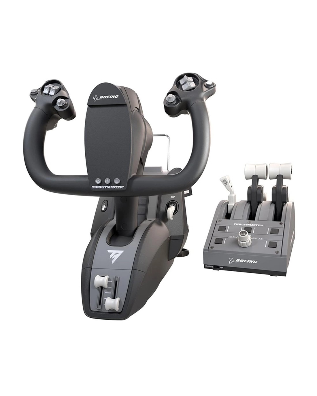 SUSPENDED PENDUL_R MECHANISMThrustmaster's suspended PENDUL_R mechanism replicates the sensations of using a floor-mounted pendular yoke — like those found in real Boeing airliners — in an exciting new way. TCA Yoke Boeing Edition features a long 8.3-inch / 21-cm range of travel.