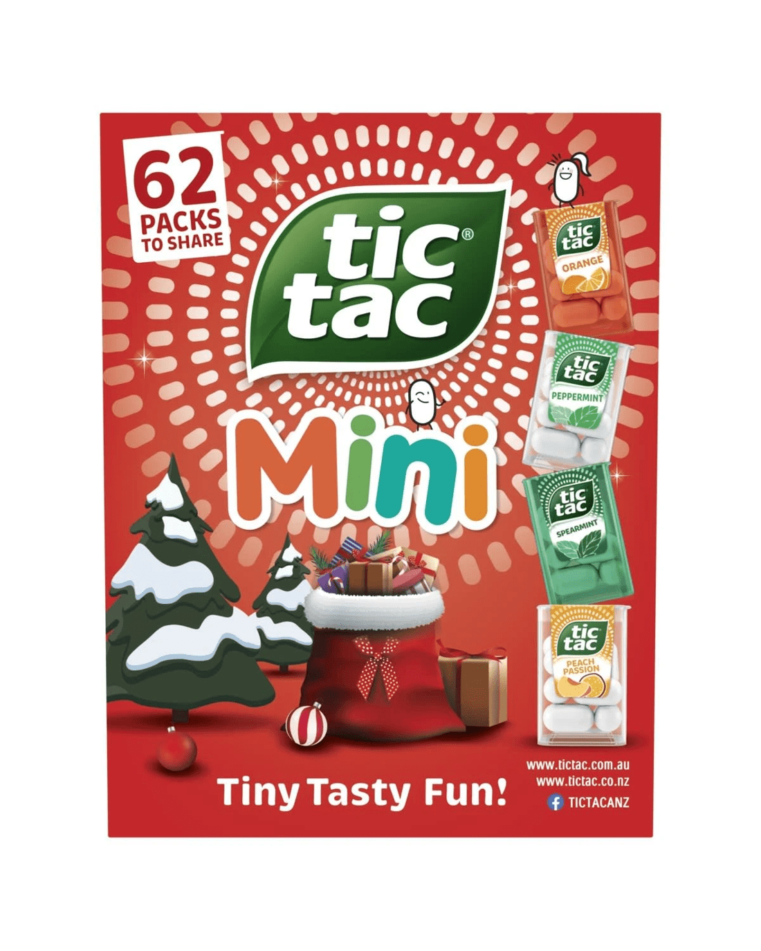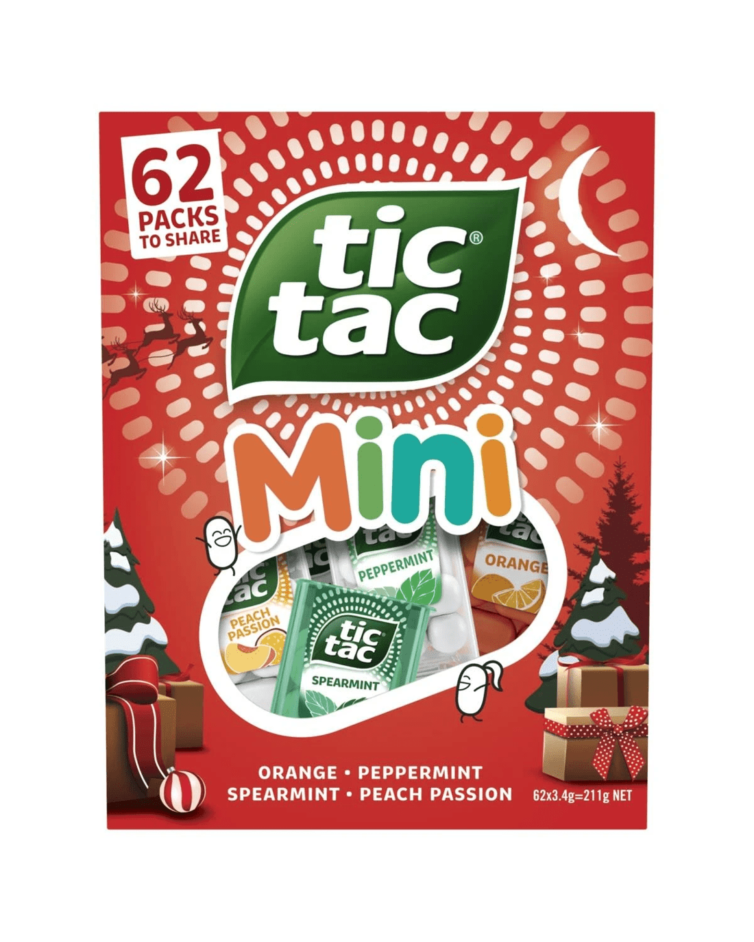 If you love the fresh taste of Tic Tacs, but can't decide on your favourite flavour, this great value variety pack is the perfect choice. This pack contains 62 individual mini packs of various flavours, including Peppermint, Spearmint, Orange and Peach Passion.