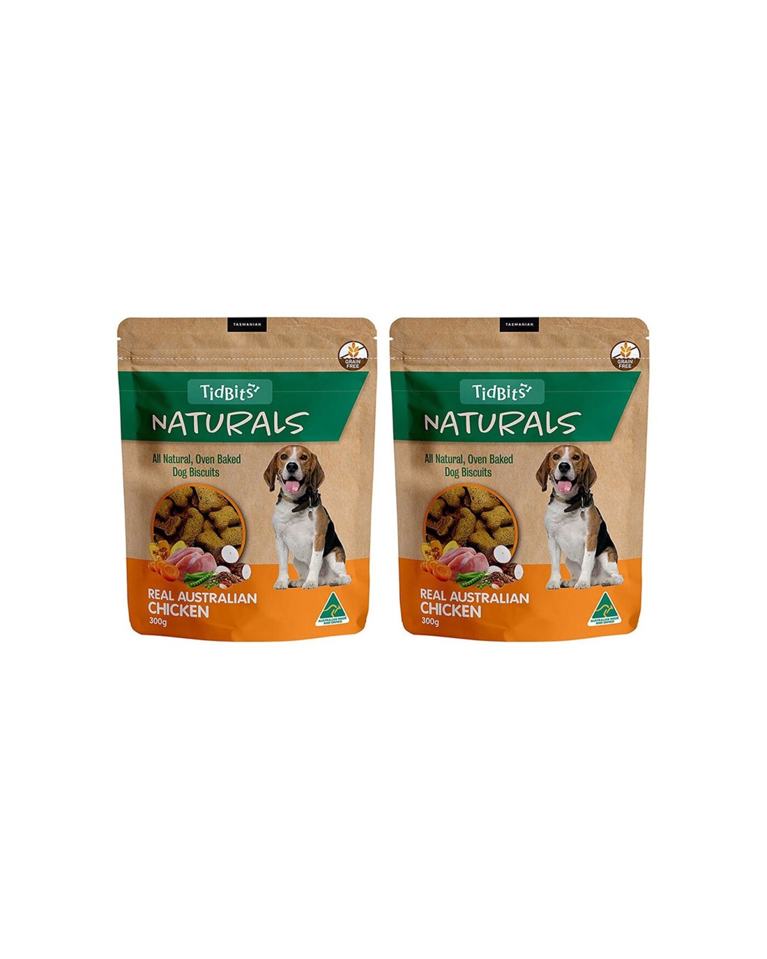Tidbits Naturals Grain Chicken Dog Biscuits 2PK 300g Healthy Treats - Natural
