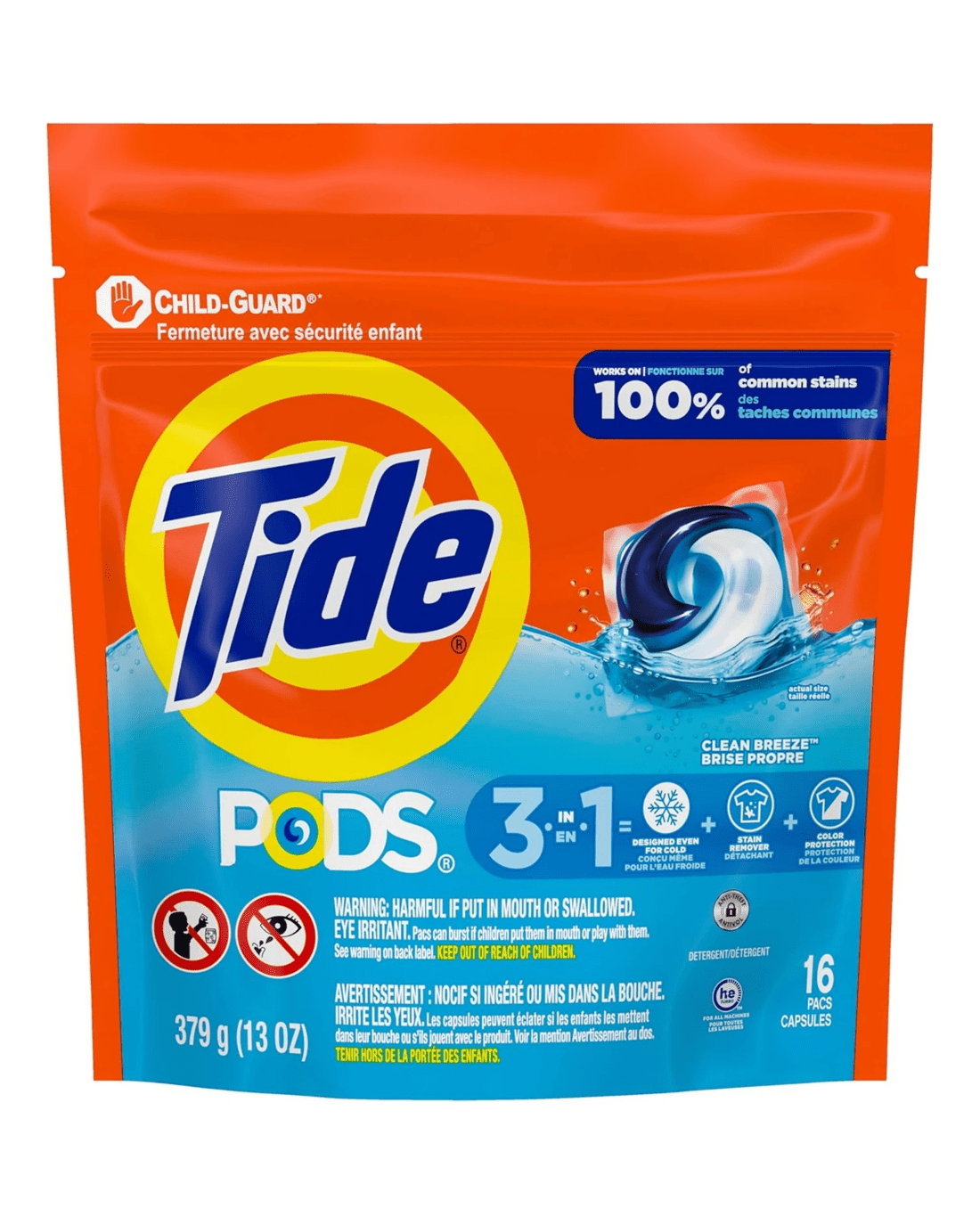 Tide Laundry Pods 3 in 1 Clean Breeze provide a powerful and convenient laundry solution with the reliable cleaning performance Tide is known for. The advanced formula combines detergent stain removal and colour protection in one easy to use pod. Clean Breeze fragrance leaves clothes feeling fresh crisp and comfortably clean after every wash.