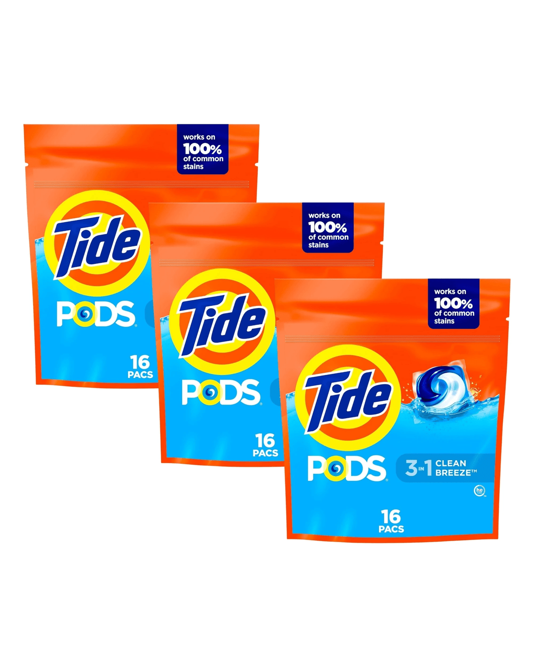 Tide 3 in 1 Clean Breeze Laundry Pods 16 Pack x3