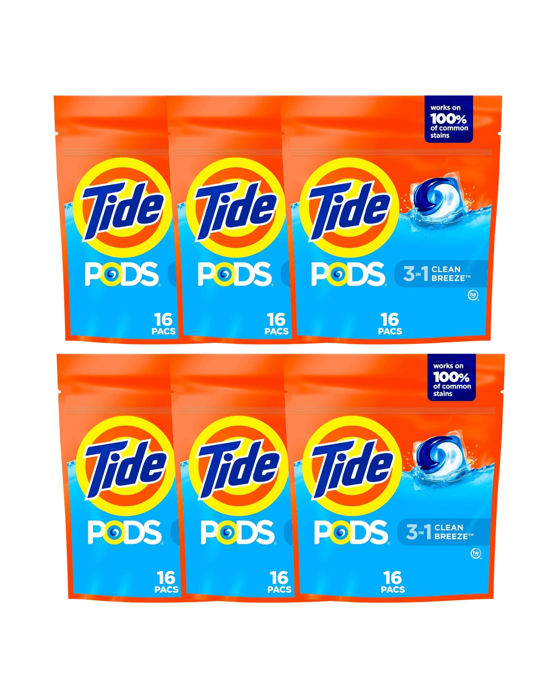Tide 3 in 1 Clean Breeze Laundry Pods 16 Pack x6