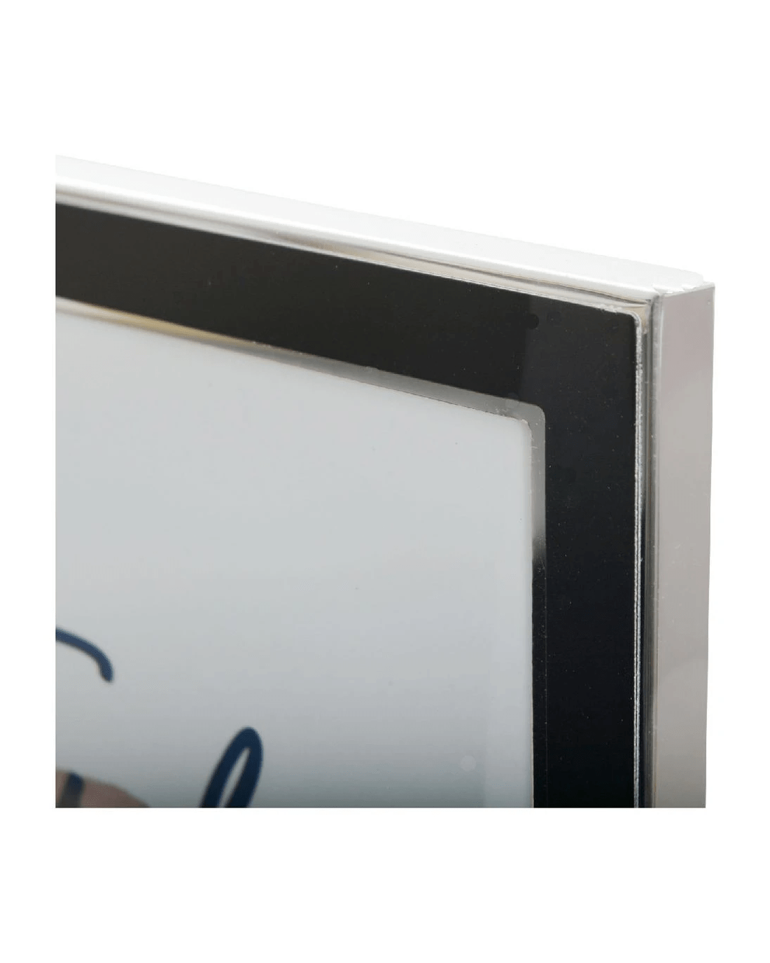 • This frame has a modern silver design.