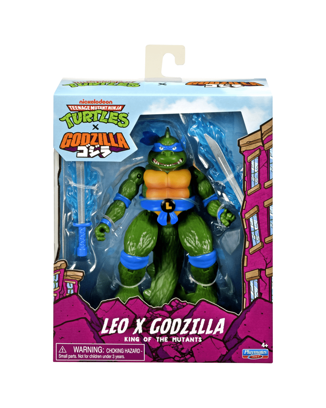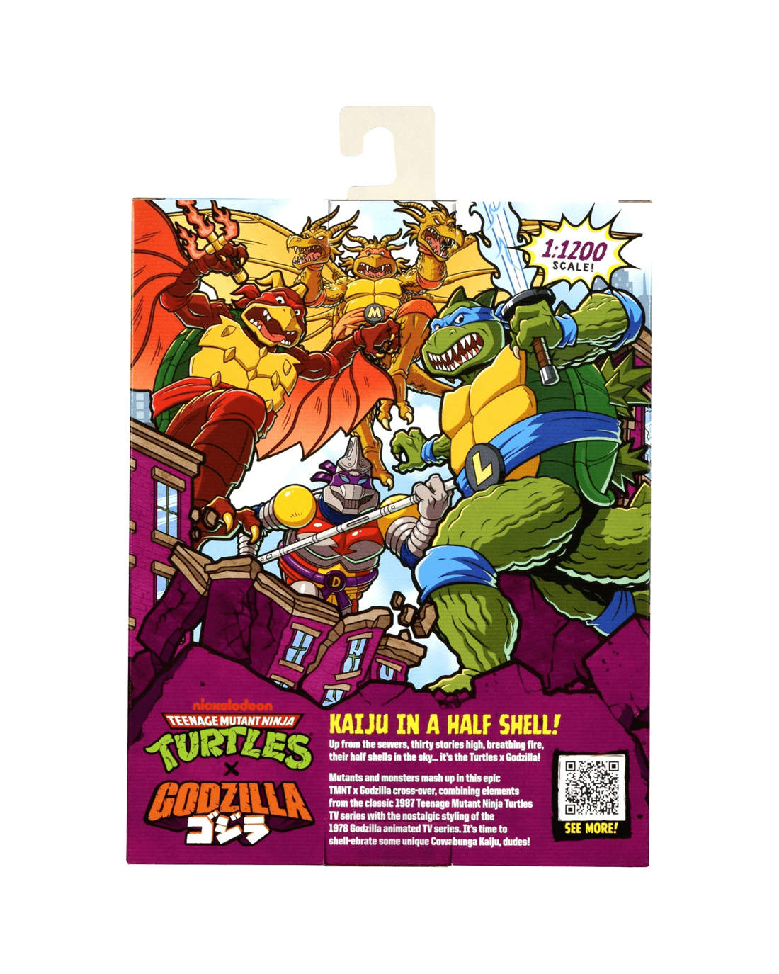 - Set comes packaged in a window box with unique graphics inspired by both the Teenage Mutant Ninja Turtles and Godzilla characters.