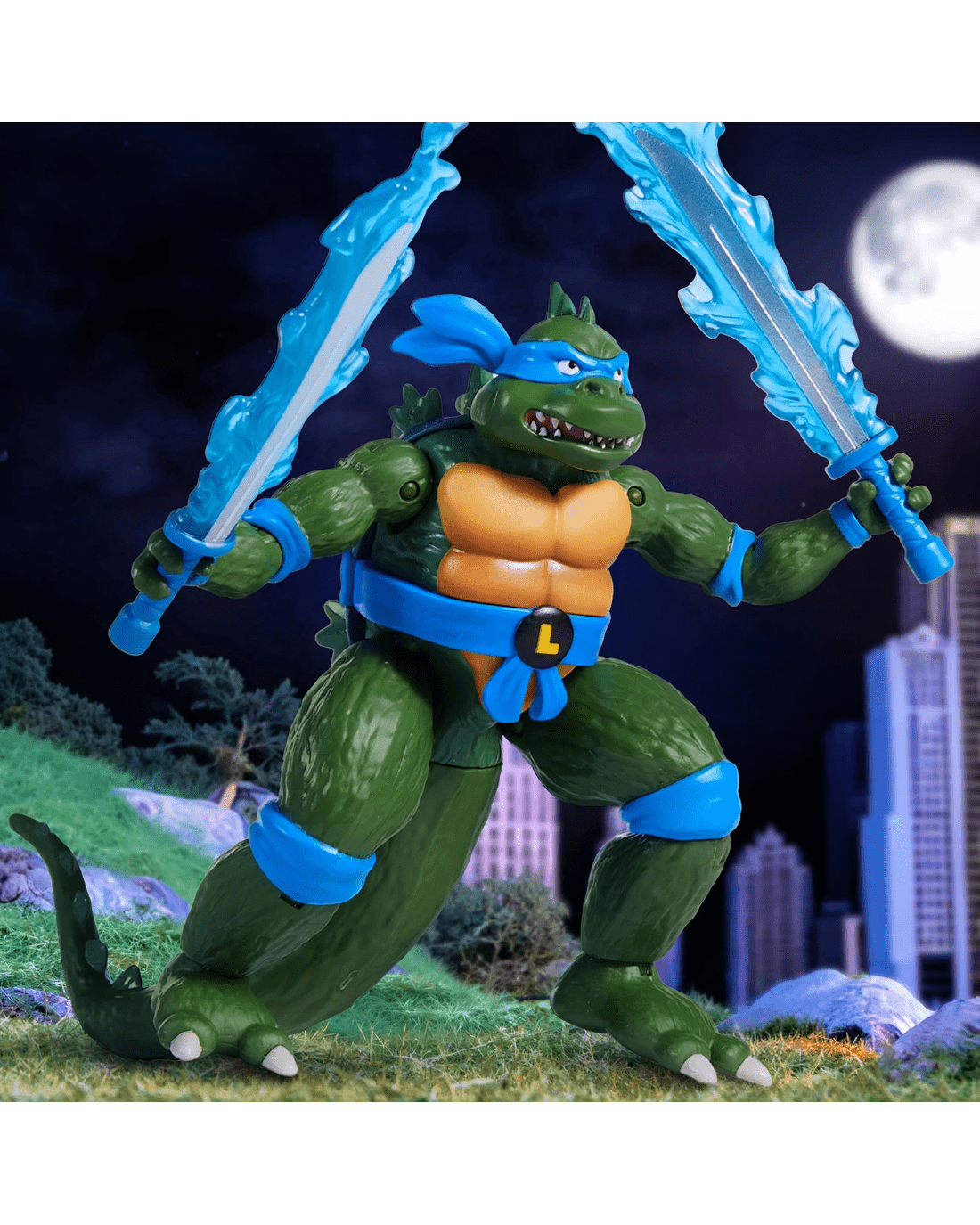 - The figure comes equipped with Leonardo's iconic twin katana, infused with the power of Godzilla's heat ray.
