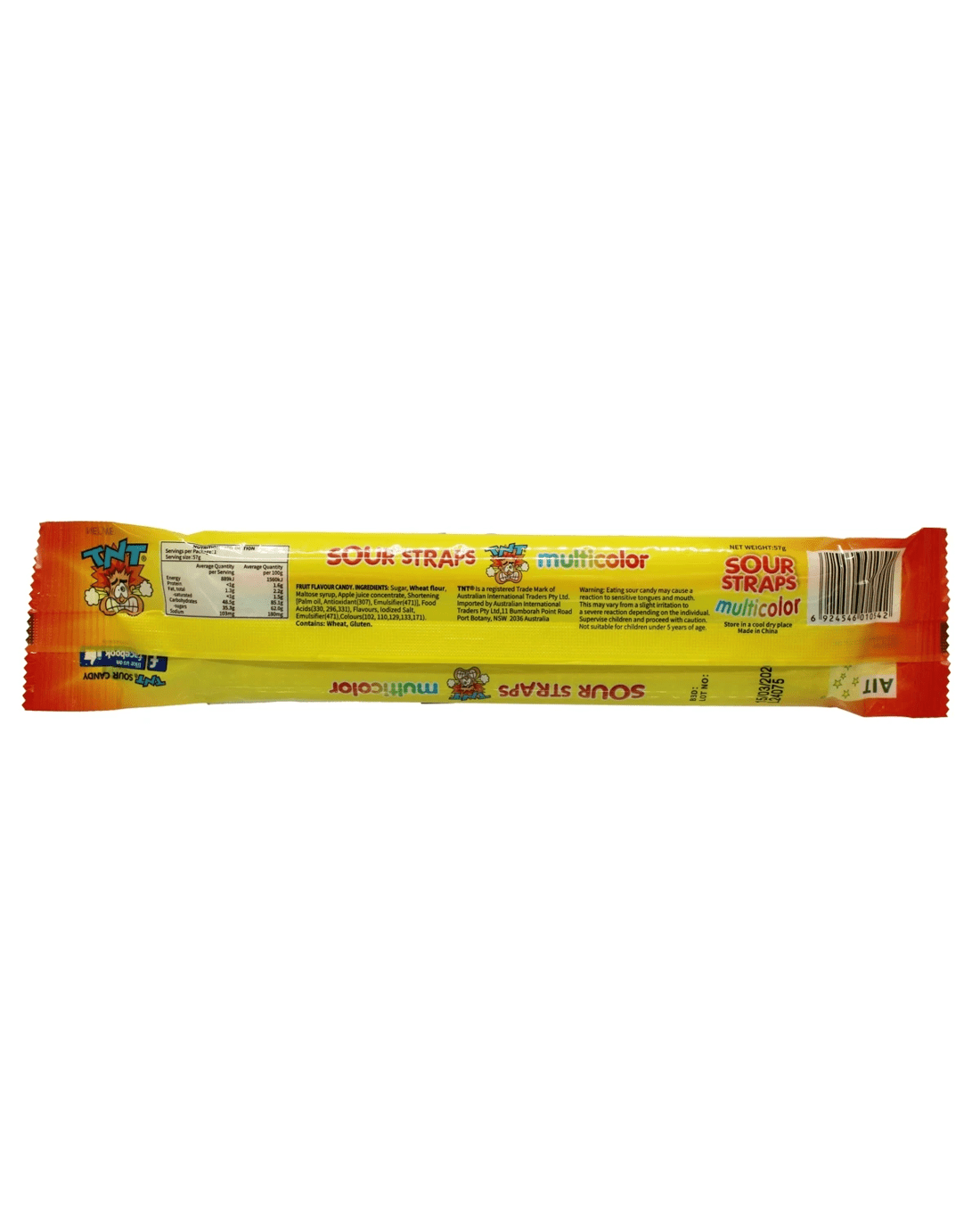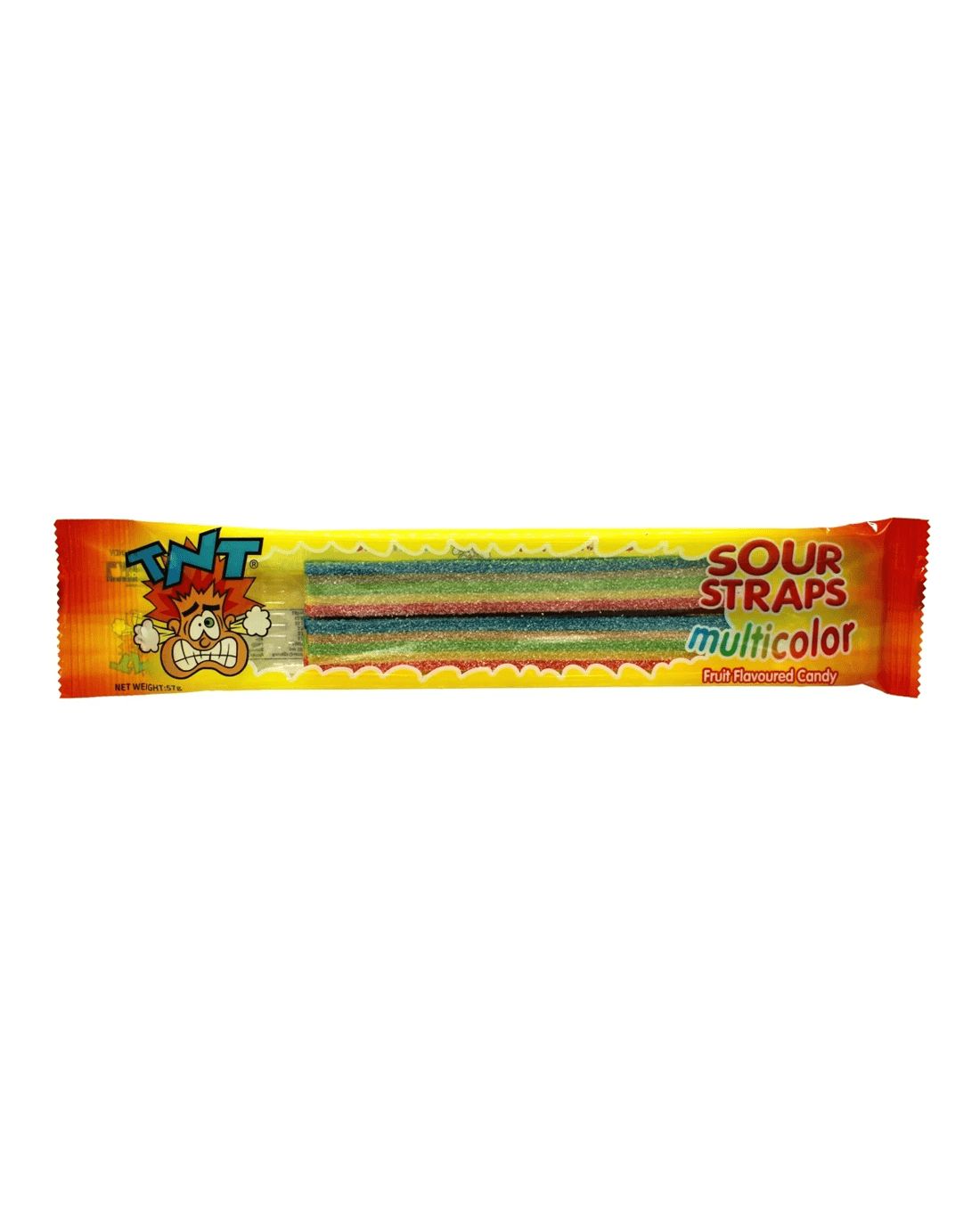 TNT Sour Straps Multicolour are here, so be ready to taste the rainbow of sour pleasure! Your taste buds will be twirling with ecstasy when you open this 57g bag full of tangy, colourful sour straps. Every strap delivers a different taste sensation, ranging from the tart punch of green apple to the zesty blast of strawberry. Welcome to the vibrant and delicious world of TNT Sour Straps Multicolor!