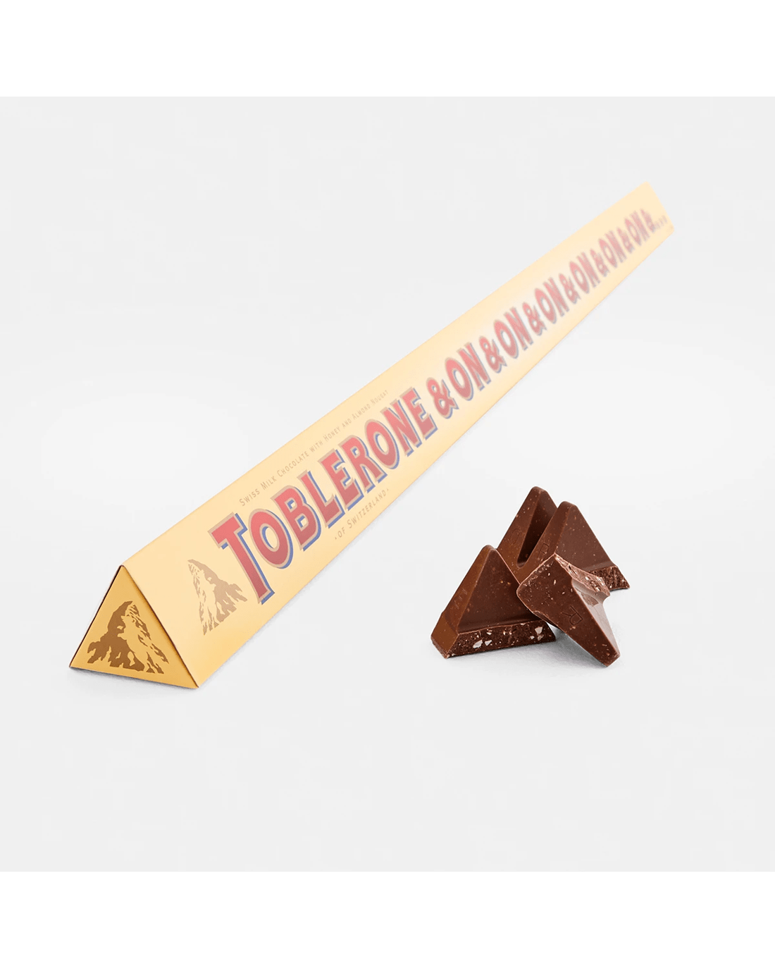 Smooth Swiss milk chocolate with honey and almond nougat in a 3 x 200g Bar.