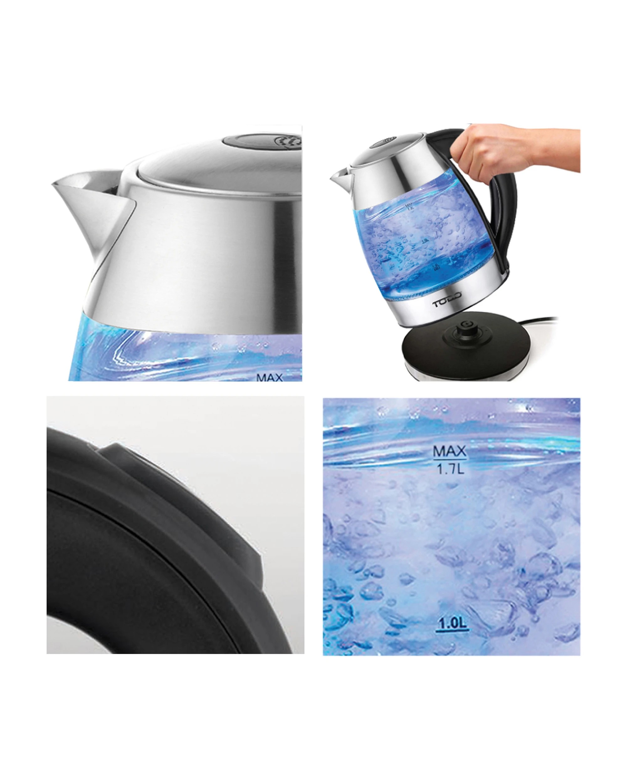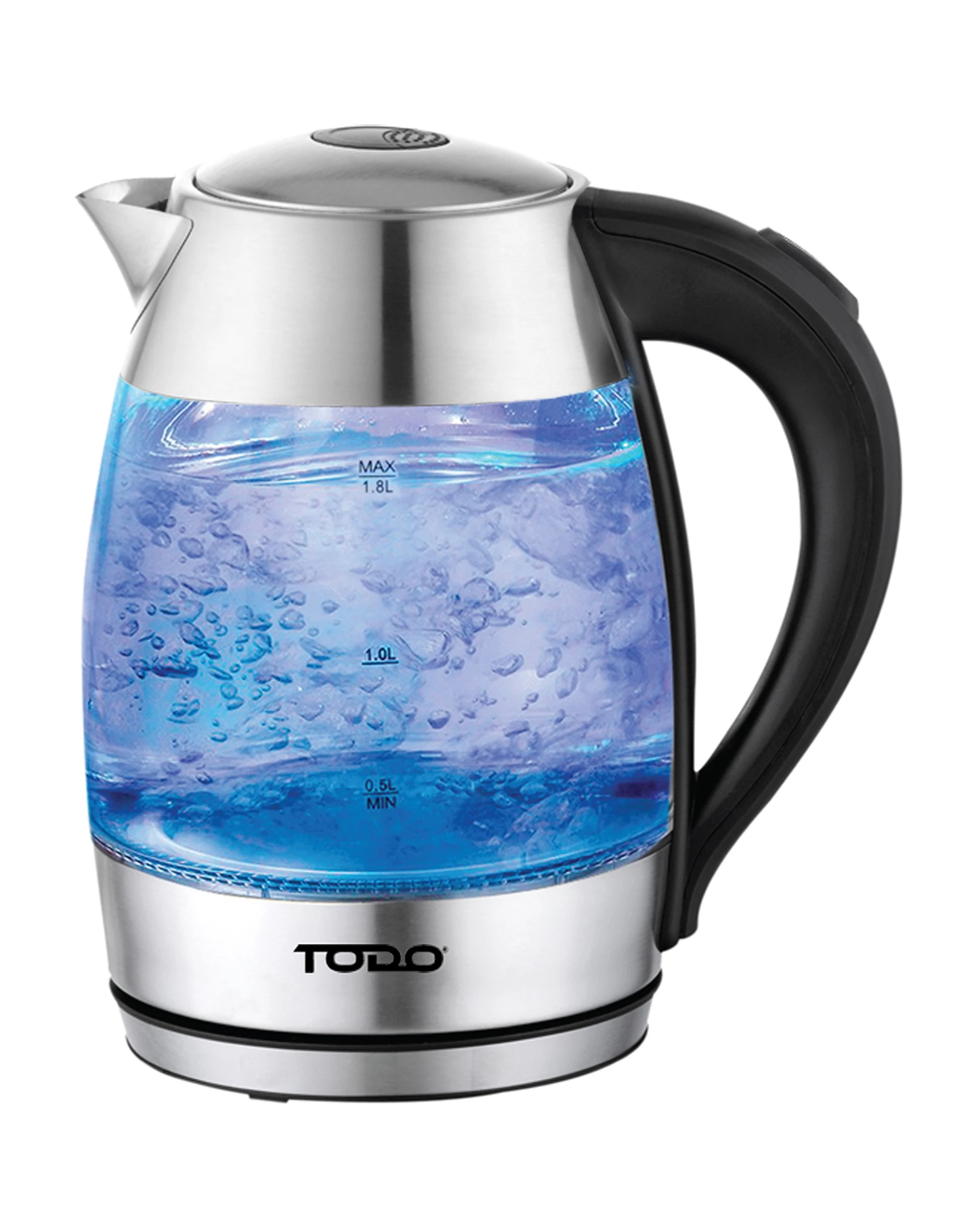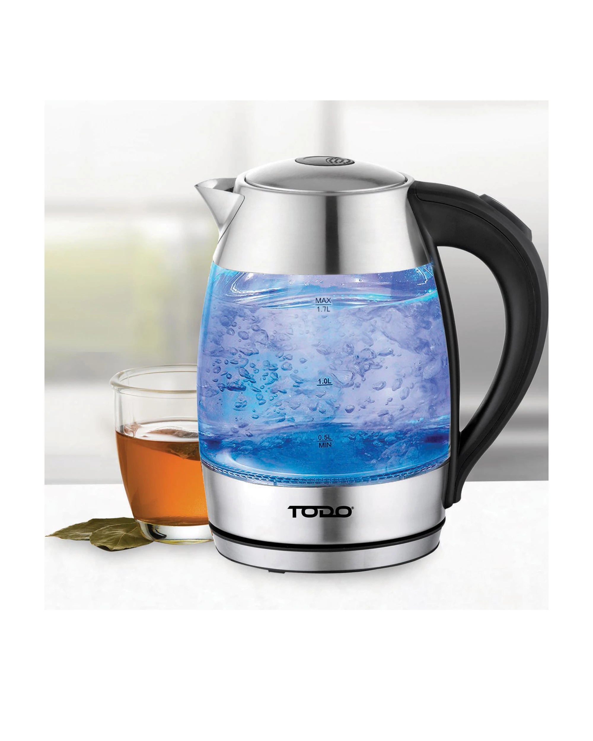 TODO 1.7L Glass Cordless Kettle Electric Dual Wall LED Water Jug - Stainless Steel