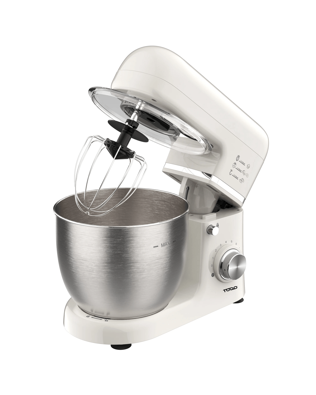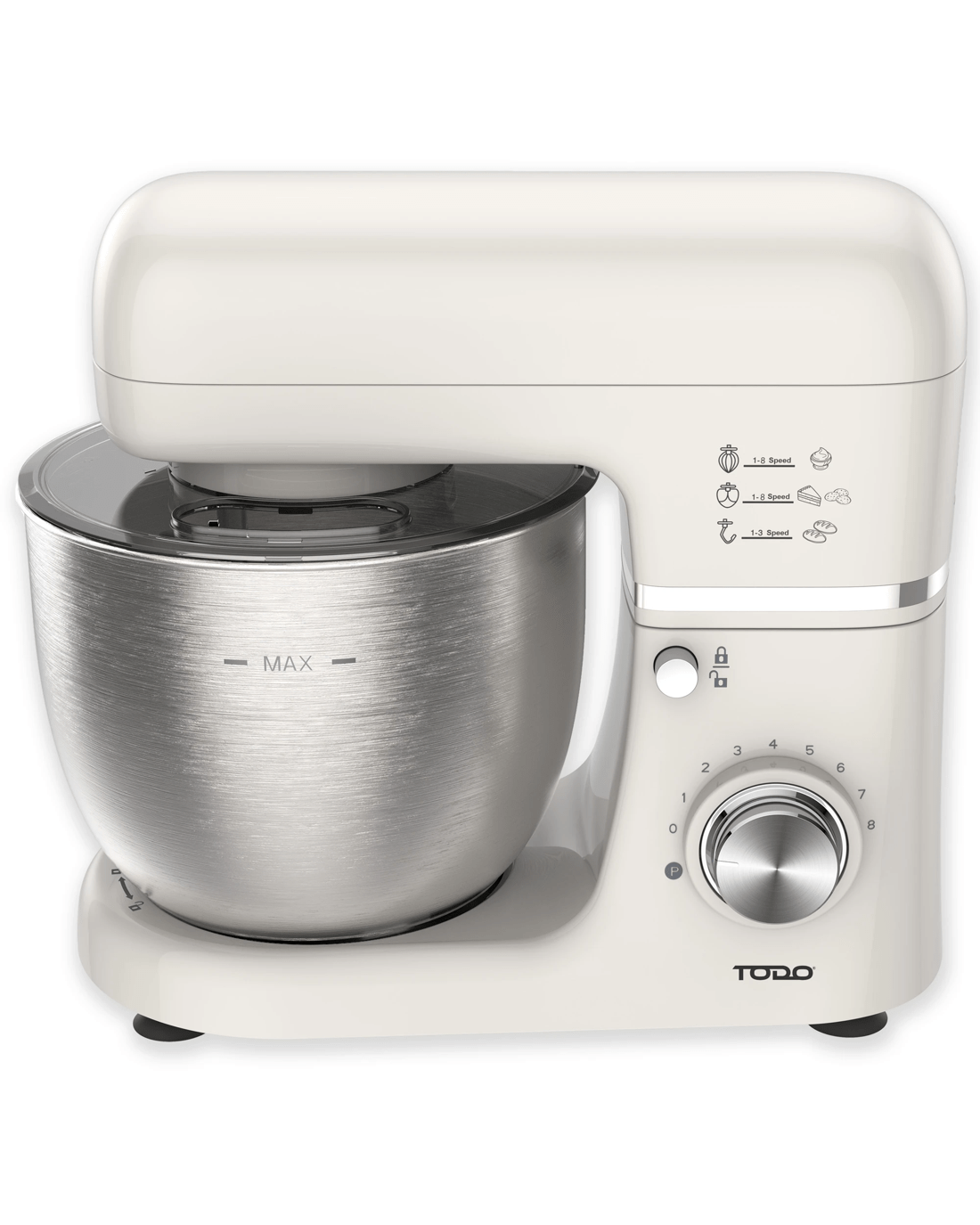 TODO 1300W Electric Stand Mixer 5L Stainless Steel Bowl 8 Speed Plus Pulse Control - Cream