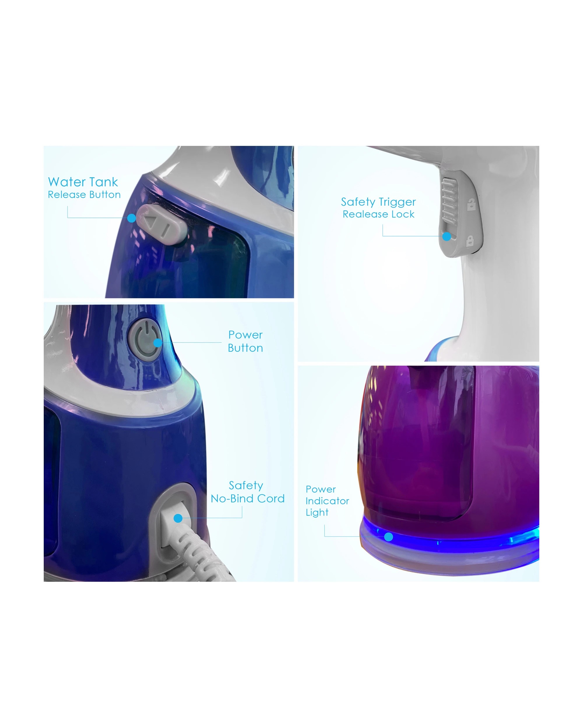 TODO 1700W Power Garment Steamer Handheld Steam Brush Iron Blue