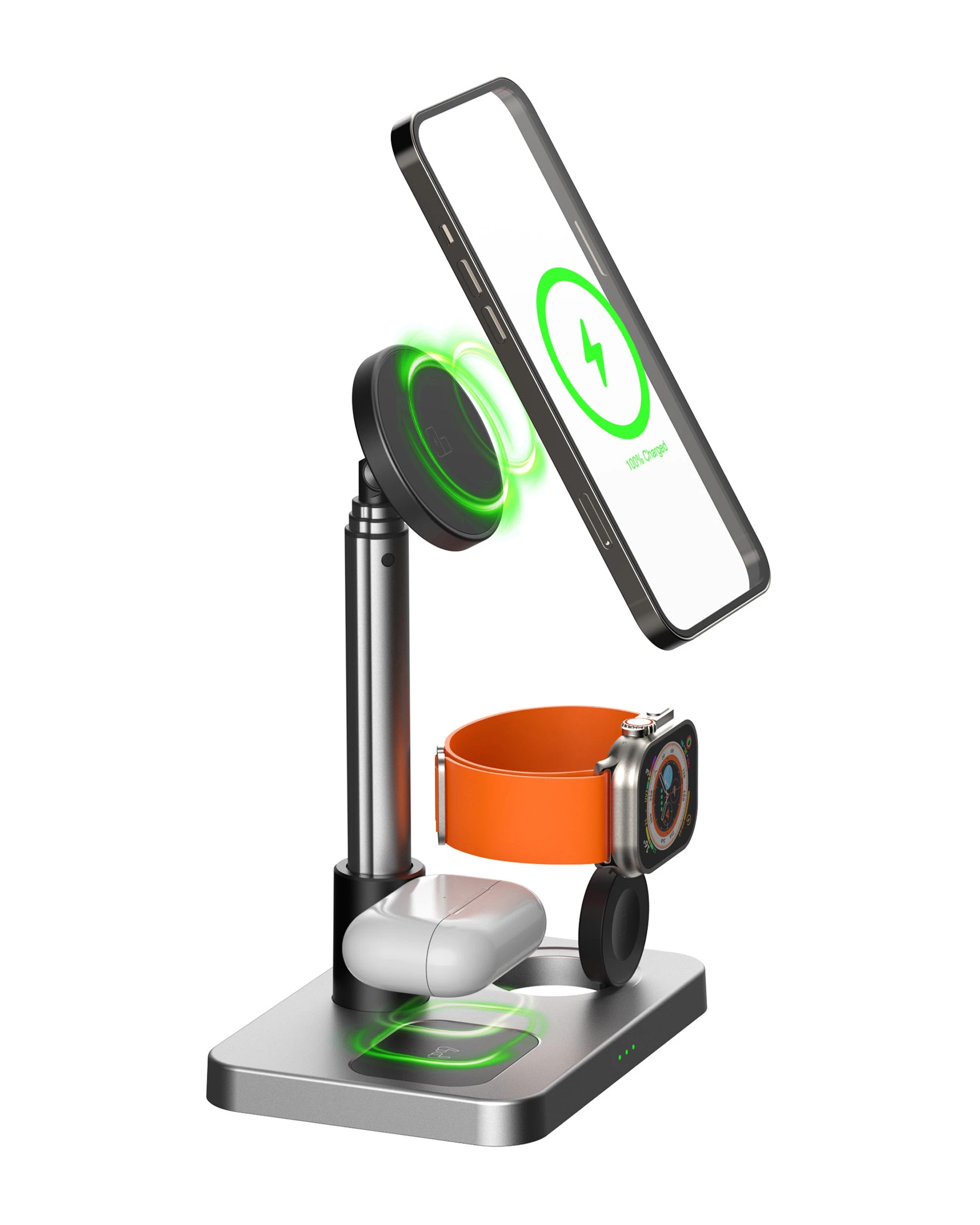 TODO 3 in 1 Wireless Phone Charger 15W Fast Charge Earphone Watch Magnetic Charge Telescopic Stand