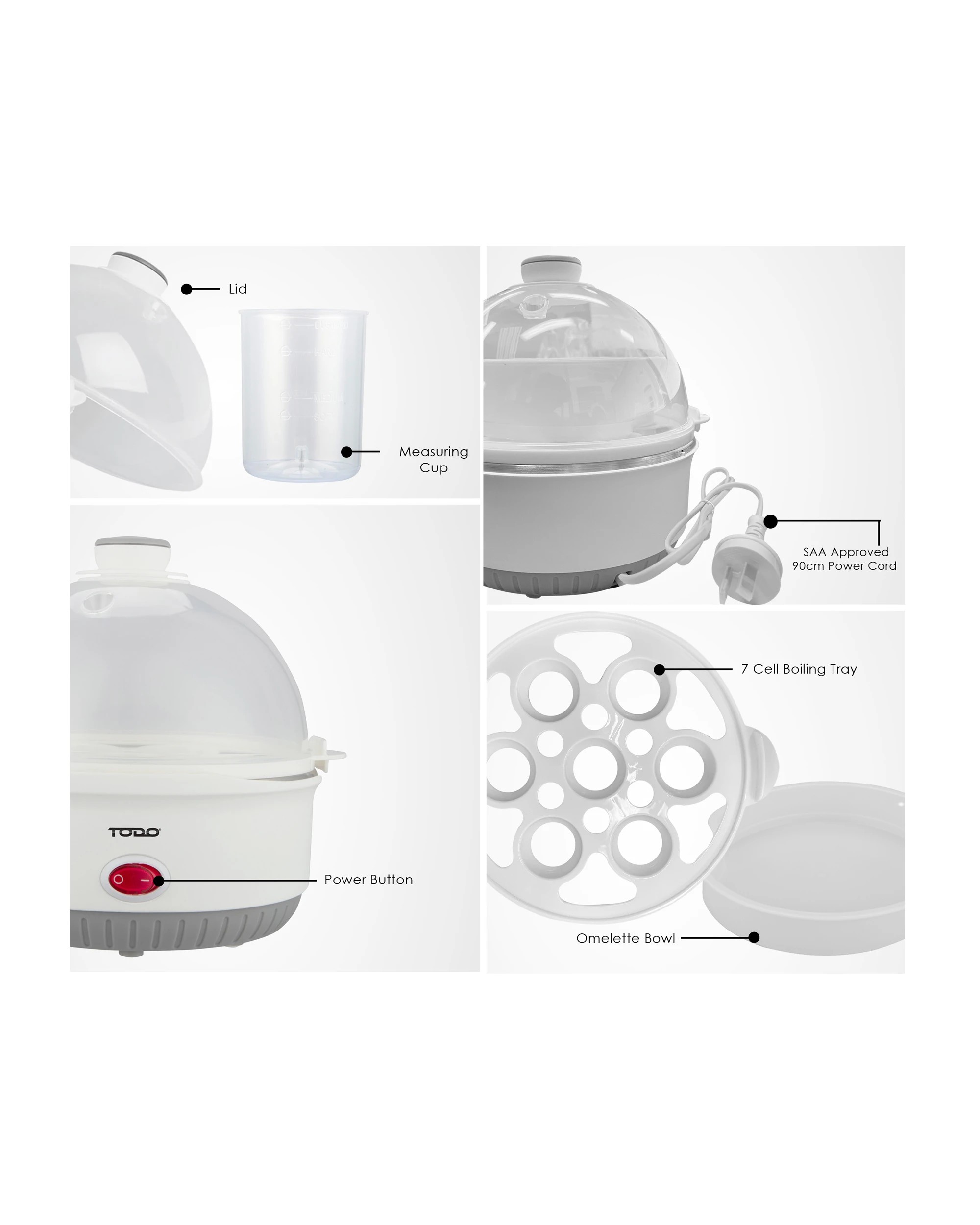 TODO 350W Egg Cooker Omelet Omelette 7 Cell Tray Electric Egg Maker - White