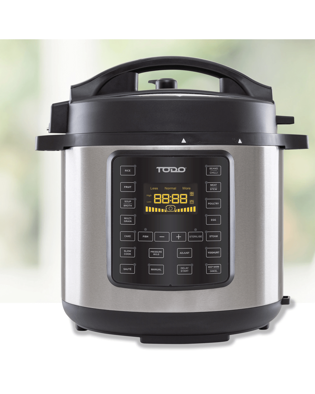 TODO 6L Pressure Cooker is the best way to slow-cook anything to succulent perfection. Features 15 preset cooking functions and keep warm mode allowing you to create a hearty meals at ease with a flick of a switch.