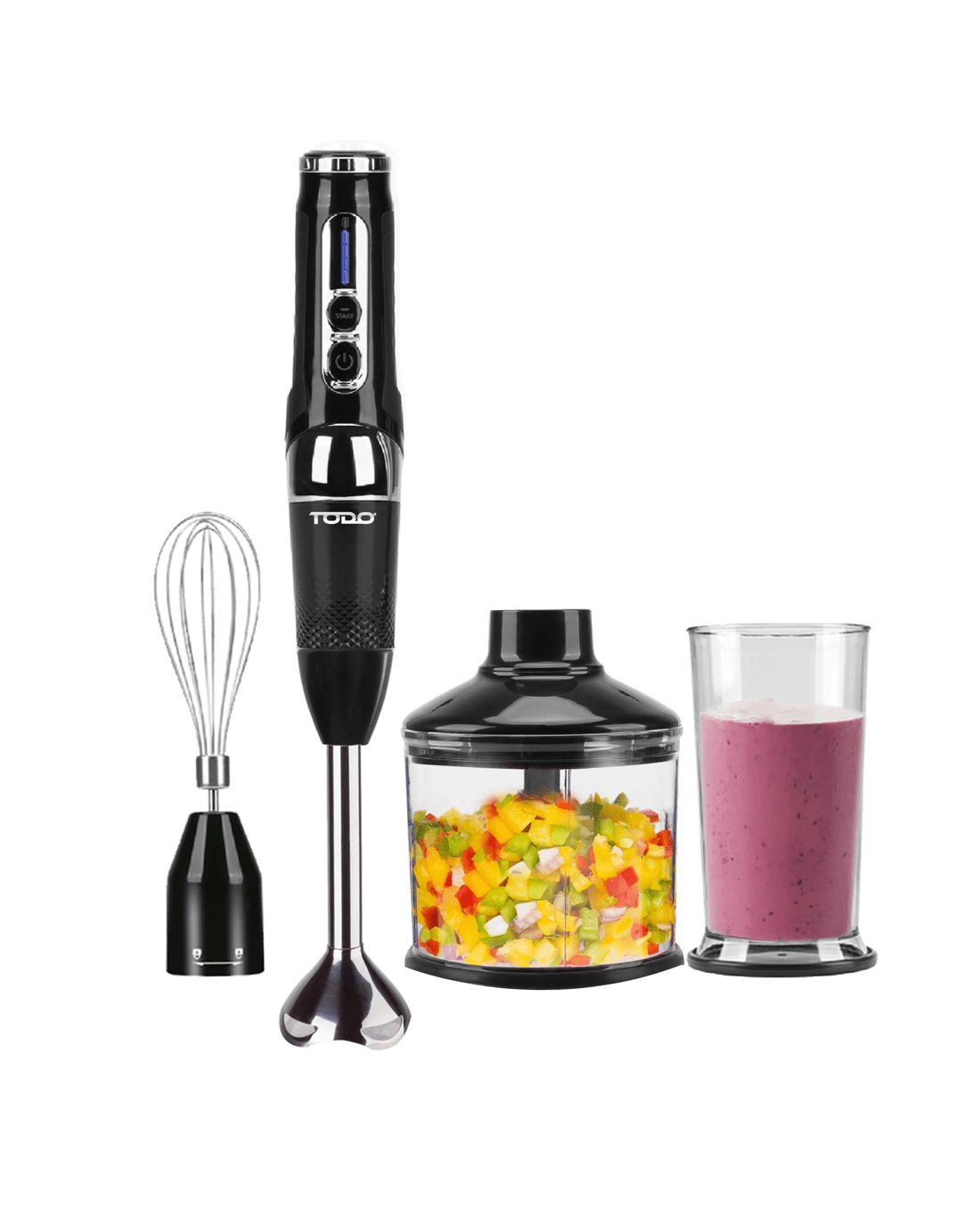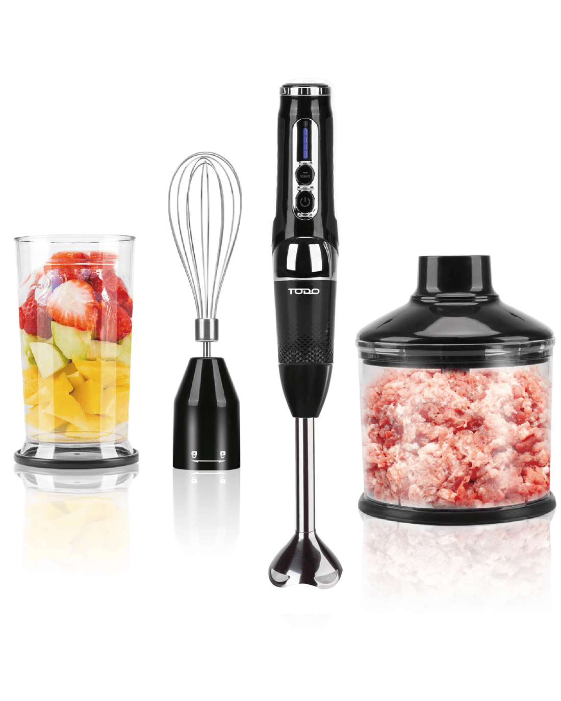 TODO 3 in 1 cordless stick blender, multi chopper, whisk, offers an all in one easy preparation solution. Ideal for making homemade healthy baby food, smoothies, soups, chopping, etc. Rechargeable cordless design for ease of use, so powerful, yet so compact. Comes with 21 speed settings to meet all your needs.