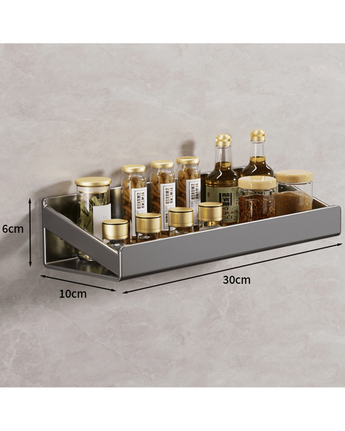 Sold by TODOTODO Floating Spice Rack Shelf Wall Mounted Condiment Stand Storage Shelve Organizer 30 x 10 cm - Grey - Grey