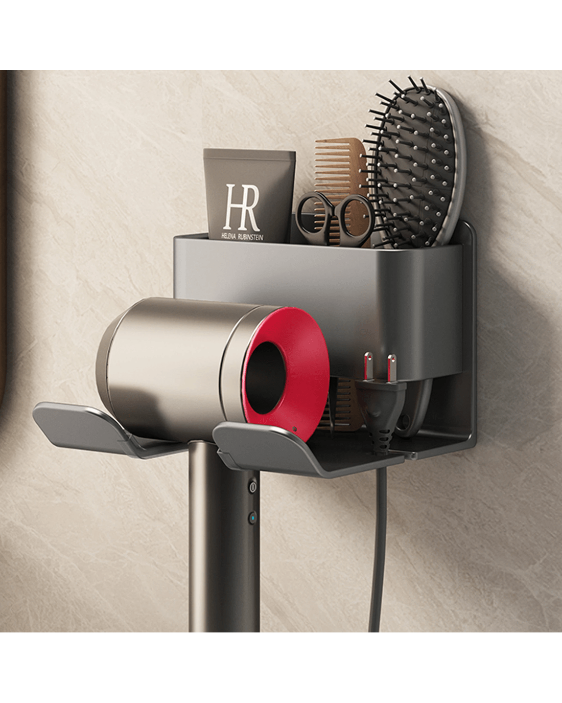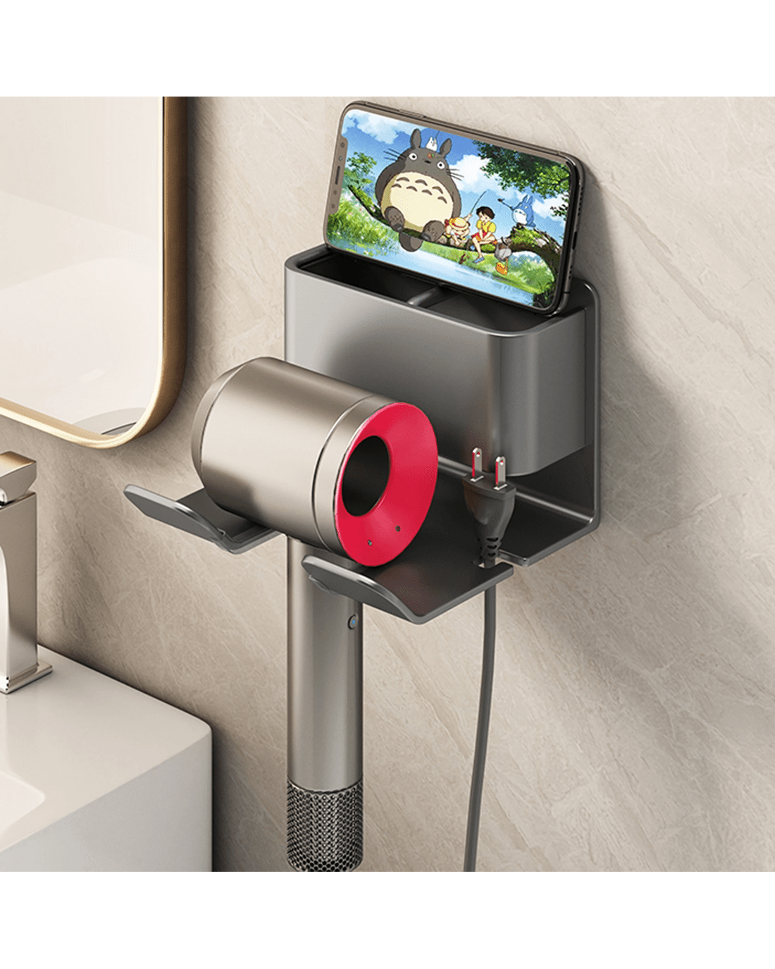 Sold by TODOTODO Hair Dryer Holder Caddy Aluminium Alloy Bathroom Storage Shelf Rust Free Wall Mounted - Carbon Grey - Grey