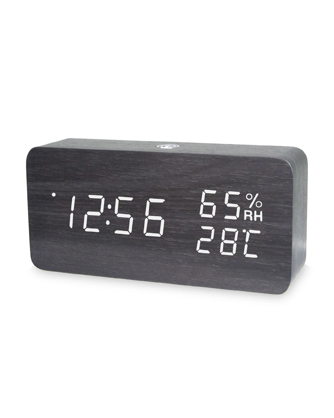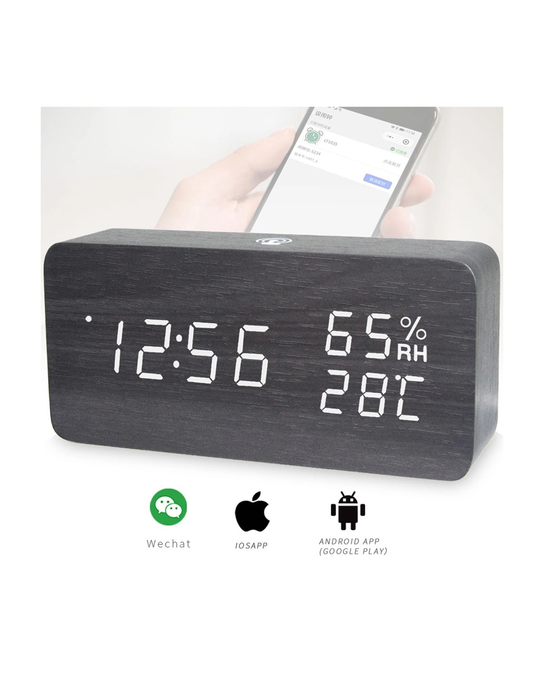 TODO LED Digital Alarm Clock Rechargeable Woodgrain USB Android iOS Control APP - Black
