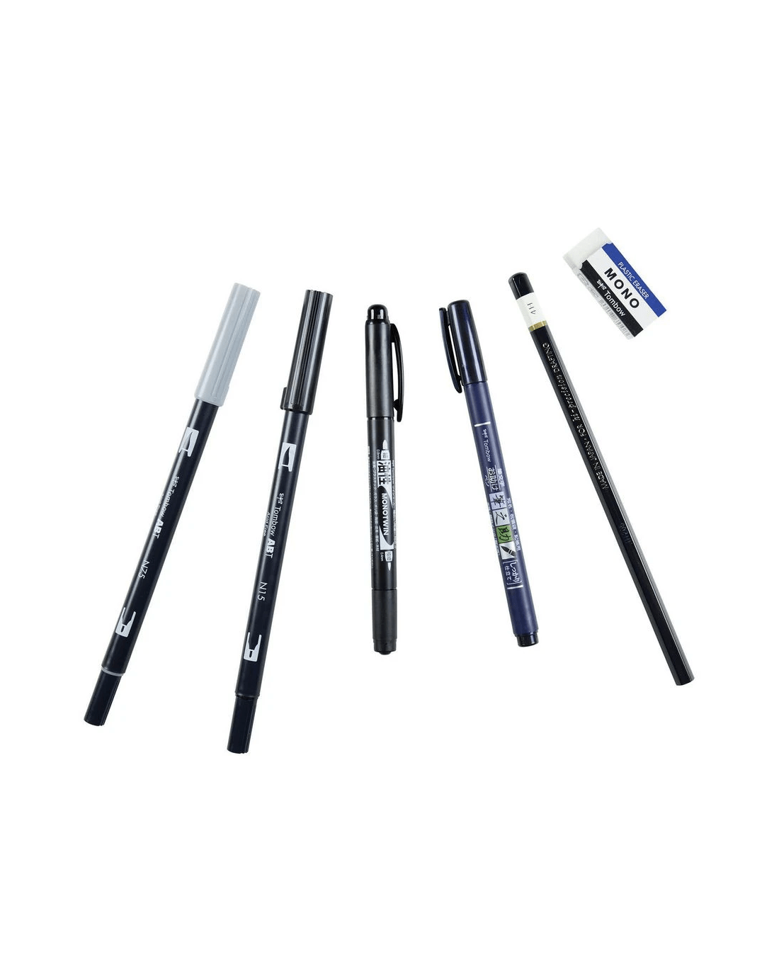 - The Beginner Set comes with 2 x Dual Brush Pens, 1 x Fudenosuke Lettering Pen with a soft tip, 1 x MONO Twin Marker, 1 x MONO Drawing Pencil, and 1 x MONO Eraser.