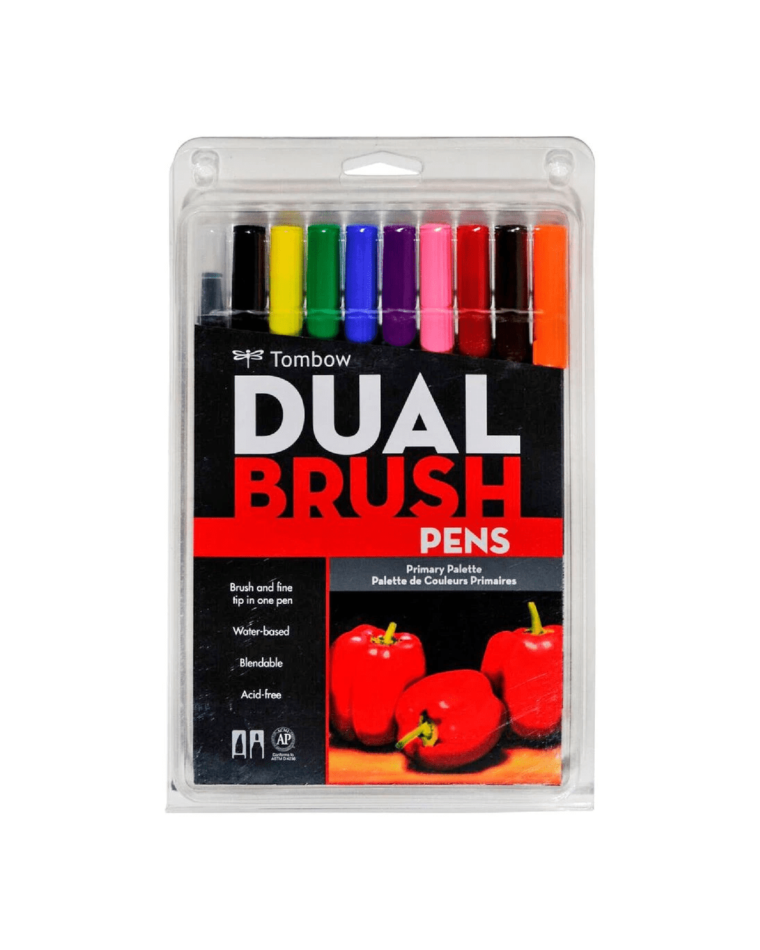 - Each pen contains dual tips, with a fine tip on 1 end and a brush nib on the other.