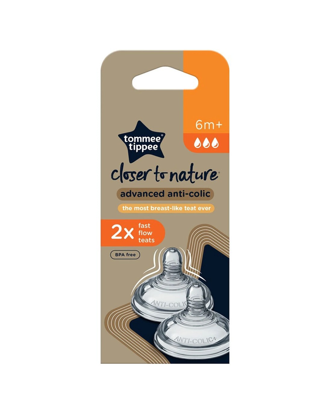 Sold by KG SuperStoreTommee Tippee 2pc Advanced Anti-colic Fast Flow Baby Teats 6 Months Plus - Clear