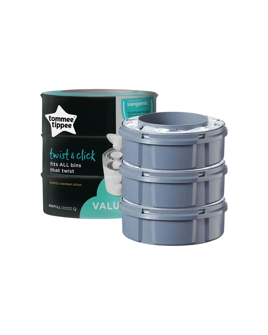 Sold by KG SuperStoreTommee Tippee Twist And Click Refill Pack 3 Pack Nappy Bin Antibacterial - Plain