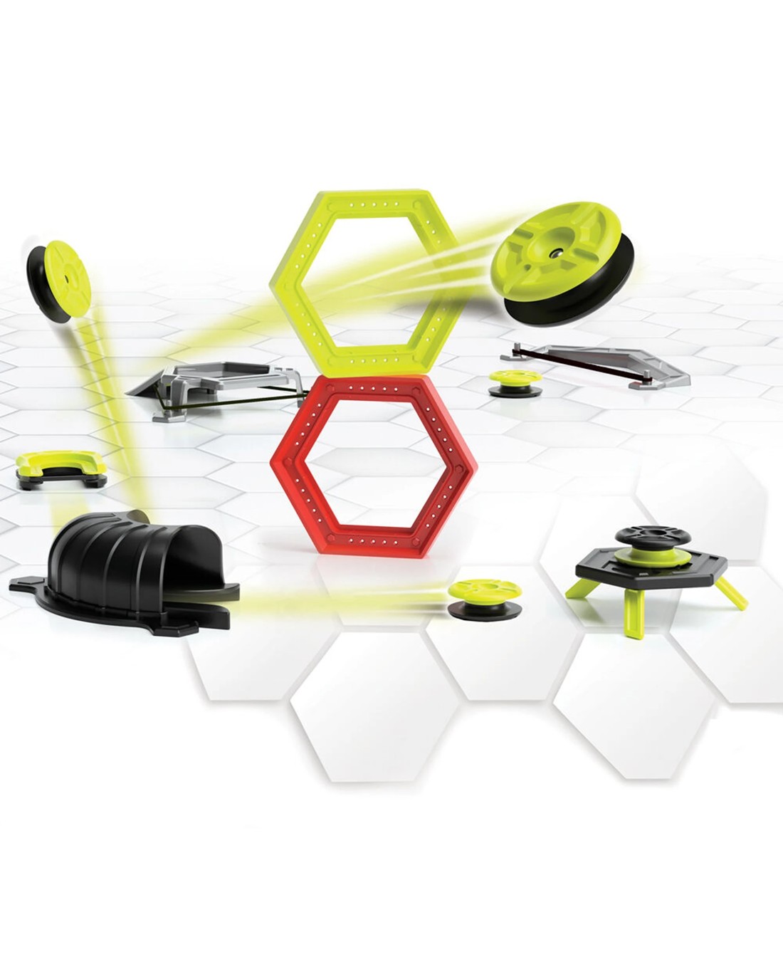 Includes: Stunt Module, Mag-Module, 2 Hex Rings, Tunnel Ramp, Rebounder, Launcher, 5 Mag-Pods, 15 challenge cards, reusable sticky pads