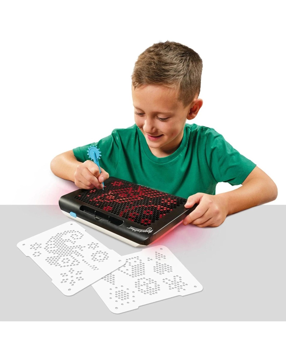 Let your little ones spark their creativity with TOMY Megasketcher Lights Alive! Lights Alive features a grid of 632 dots: each one will light up with a satisfying pop when you press it, revealing different coloured lights hidden underneath. Just like popping bubbles, once you start, you can't stop! How it WorksThe innovative drawing tool has a nib at one end to colour in dot by dot, and a pizza cutter style roller at the other end which lets you draw lines, or cover entire areas by sweeping back and forth. Draw freehand, or use one of the two templates supplied and be inspired. Kids can create butterflies, faces, hearts, houses, trees and more! Animate your CreationThere are 8 different colours hidden around the board which light up brightly even in the dark and on sunny days. Press the button at the top to animate your design as the colours change in a lively sequence. There are 4 animated effects and 8 colours to select. Once you've finished drawing, you can display your masterpiece using the upstand at the back. Mess-free Drawing ToyWhen you're ready, erase your design and start over again. There's no waste, no mess, no paper to run out of, no pencils to sharpen, no pegs to lose and no glue required. And with no small parts to worry about, children will enjoy exploring and expanding their skills and creativity. Ages 3 +