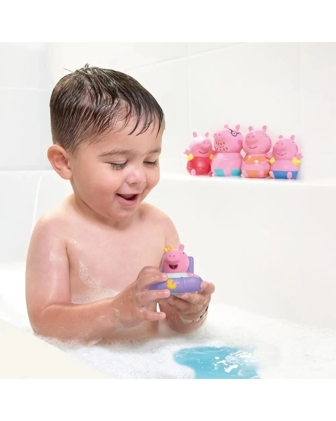 Make bathtime a splash of giggles with Peppa Pig and her family. Baby Evie joins the fun in her float, happily bobbing along with her duck WakWak by her side, ready to squirt, splash, and join in all the bathtime adventures. This cheerful set of five soft-touch squirters features Peppa, George, Mummy Pig, Daddy Pig, and Baby Evie, all perfectly sized for little hands to hold, squeeze, and splash. A gentle squeeze underwater fills them up, and another squeeze sends water squirting out - for endless bathtime fun! Perfect for bathtime or paddling pools, the set encourages imaginative play, storytelling, and water confidence. As toddlers play, they'll explore cause and effect, develop fine motor skills, and enjoy role play with their favourite characters.When the fun is done, drain, air dry, and wipe clean - ready for the next adventure. Ages 18mo +