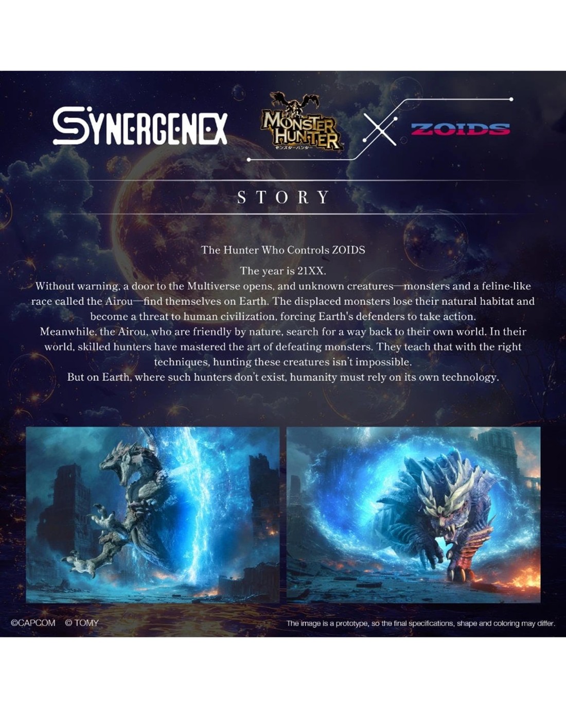 Experience the ultimate fusion of ZOIDS and Monster Hunter with this Gatling Fox Mizutsune! Combining the best of both worlds, this model kit lets you assemble a creature like no other—a Gatling Fox infused with Mizutsune's legendary features. Gradient painting enhances the monster-like design, while new parts on the head, back, and tail amplify its attacking power. This model includes a rider that captures the hunter's role in battle. Not just for display, the model's unique motorized movements bring it to life. Watch it sweep its tail from side to side as it moves forward with realistic walking action. A must-have for ZOIDS and Monster Hunter fans alike—build, display, and unleash hunting instinct!