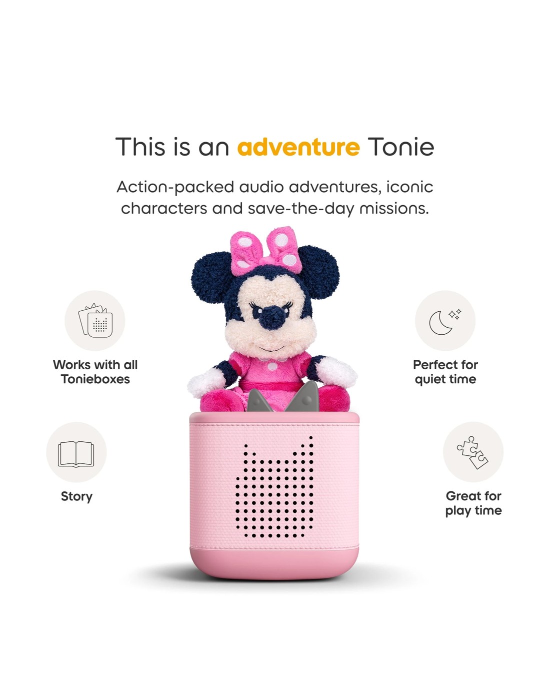 Let Minnie Mouse bring delight to your little one's day with the Disney Minnie Mouse Cuddle Tonie. This soft, fleece companion encourages children to enter a world of gentle stories and playful moments led by Minnie herself. Perfect for cuddles and calm time, it invites kids to pop Minnie on their Toniebox and listen to enchanting tales that inspire kindness, creativity and gentle pauses. With every listen, children enjoy Minnie's cheerful adventures and a soothing final soundscape to wind down. Ideal for quiet play or a comforting bedtime routine, this charming friend is ready to spark imagination and fill any room with positivity. Give your child the gift of joyful stories and tender company—bring Minnie home today.Features