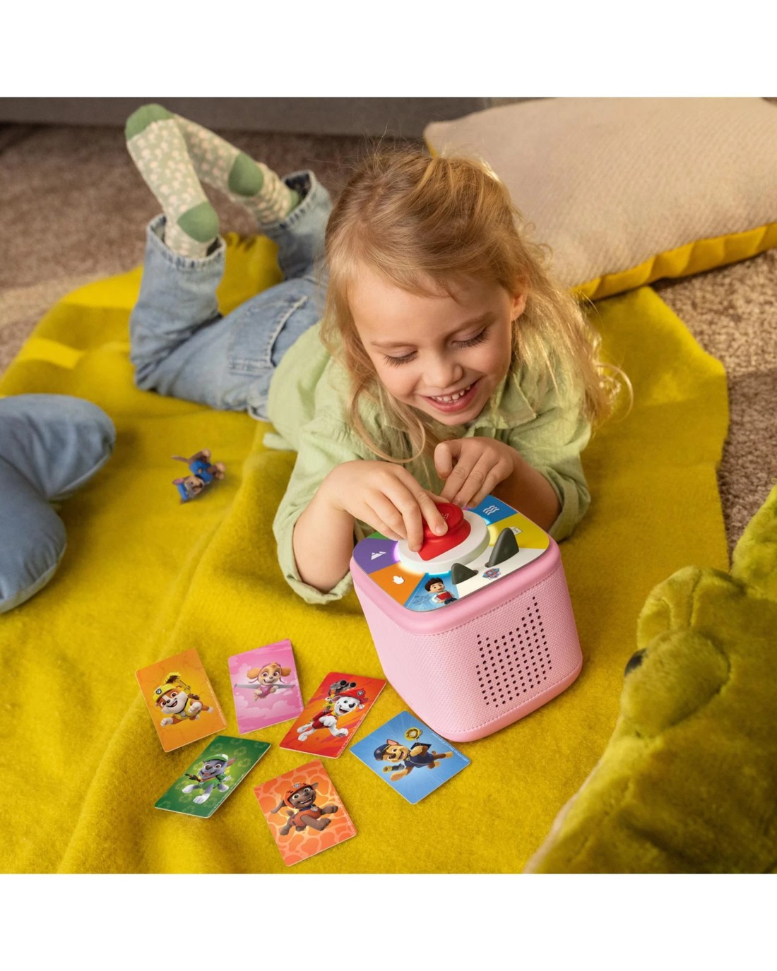 Let your child experience magical adventures with the PAW Patrol Toniebox 2 Full Play Set in Cloud Pink. This delightful set includes a Chase figurine and tonnes of interactive content, offering a wonderful gateway into stories, songs, and fun challenges. The Toniebox 2 has been thoughtfully designed for little hands, so young listeners can easily choose what to enjoy next. Whether it's saving the day with PAW Patrol or tackling new games, kids stay engaged all day long. Features like a gentle Sunrise Alarm and Sleep Timer help families create calming routines, while parents can feel comforted knowing the playtime is always safe and ad-free. Spark curiosity and build your child's confidence with every story.Features