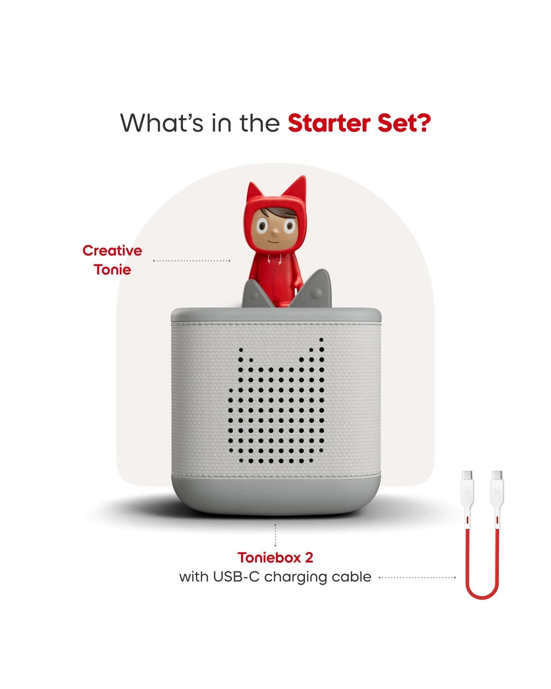 Discover a world of imagination with the Toniebox 2 Starter Set, featuring the delightful Creative Tonie Rubie in a stylish Moon Grey design. Perfect for bringing stories and music to life, this clever audio player is made for little hands and adventurous minds. Whether it's storytime, music moments, or screen-free games, kids navigate their own audio adventures while building confidence and independence. Parents will love the peace of mind, knowing there's no screen, no ads, and bedtime routines are supported by gentle light and sound features. With endless content to explore and the freedom to create your own audio, Toniebox 2 is sure to spark joy and keep children happily entertained from morning until night. Treat your family to hours of engaging fun—let your next big adventure begin today.Features