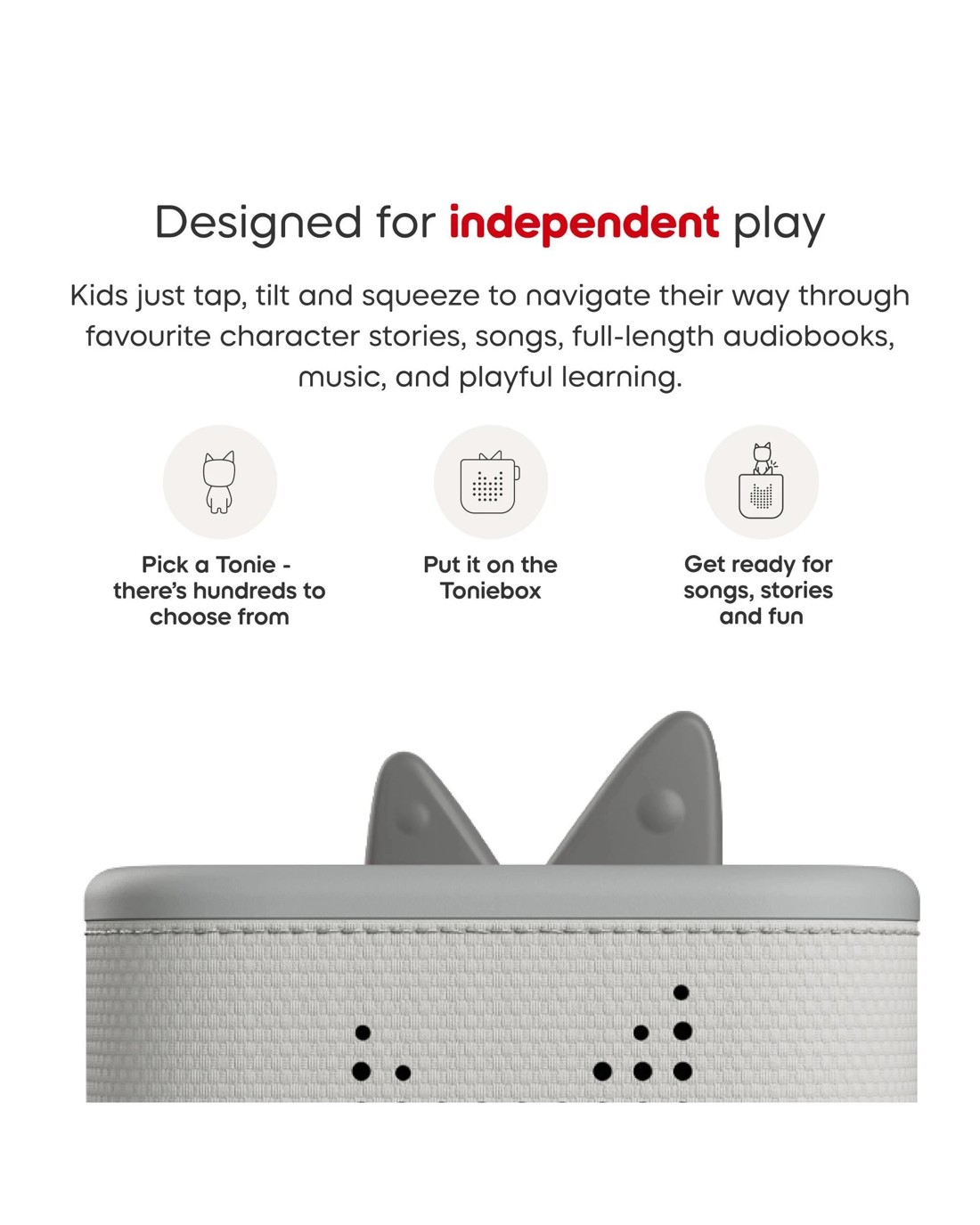 - SONGS AND STORIES WITH TONIES: There are hundreds of Tonies to choose from- packed with songs and stories from their favourite characters.