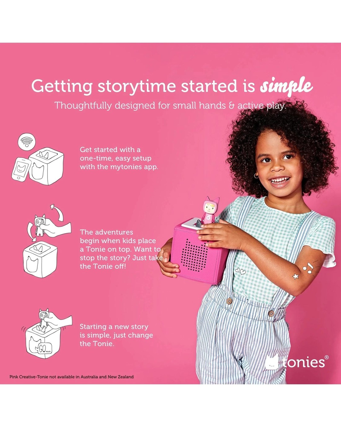 - Includes: The Starter Set has got all you need to get started: the Toniebox, a Playtime Puppy Tonie, a USB-A charging station, and an easy to understand instruction manual.