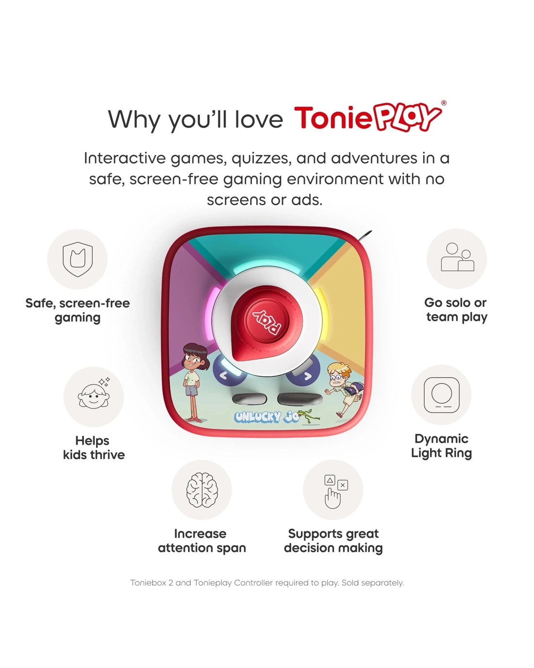 - Interactive Play: Unlock a world of games, quizzes, challenges, and adventures with Tonieplay for Toniebox all in a safe, screen-free environment with no ads.
