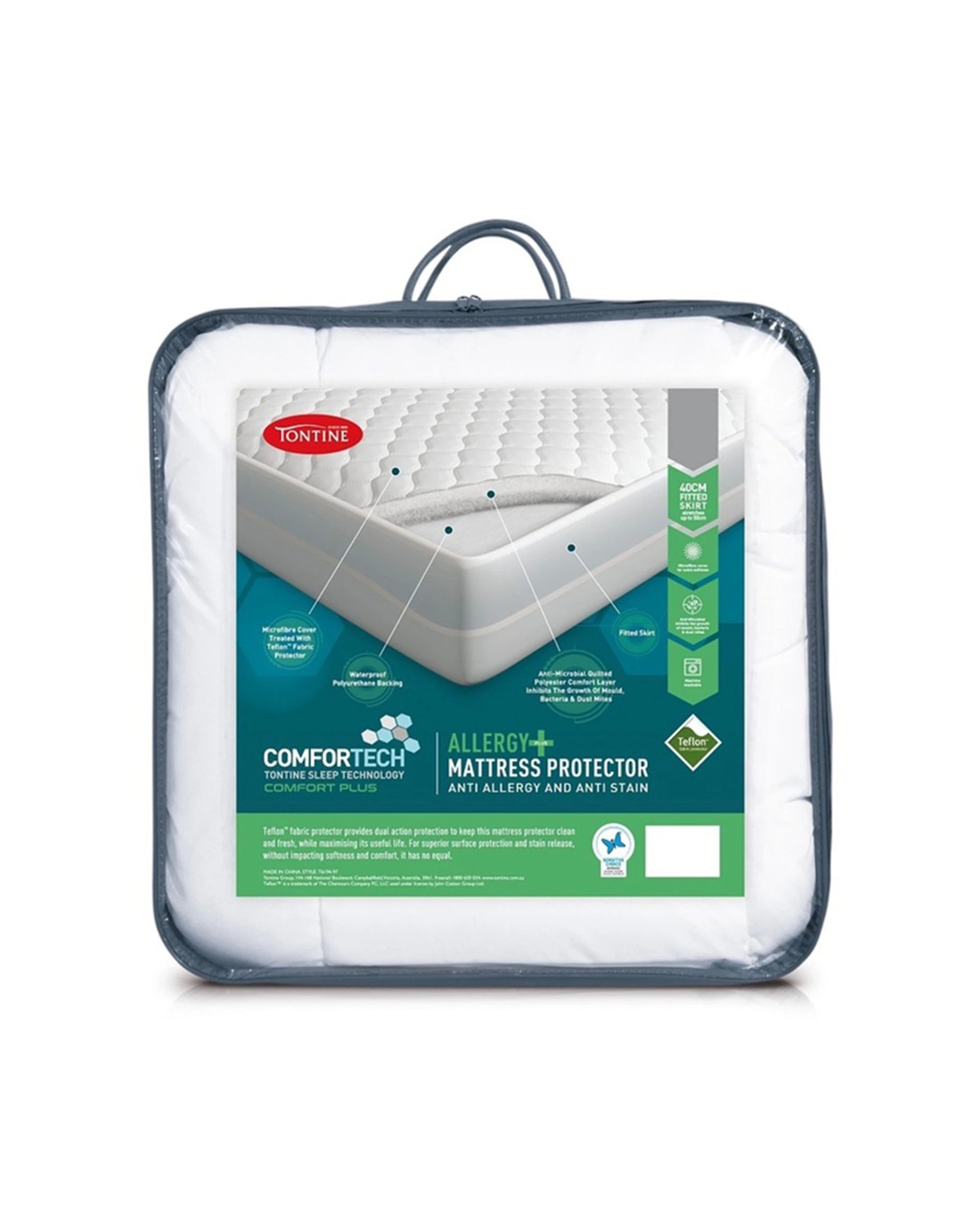 The Tontine Comfortech Comfort Plus King Bed Anti Allergy Mattress Protector is designed for those seeking a healthier and more comfortable sleep environment. It offers effective allergy and stain protection, making it ideal for allergy and asthma sufferers.