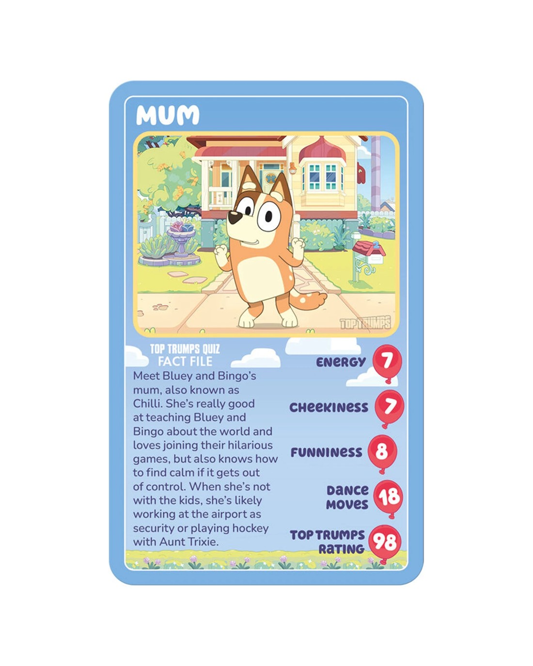 Educational and Entertaining Discover new facts about Bluey characters while competing to become the Top Trump, making learning fun.