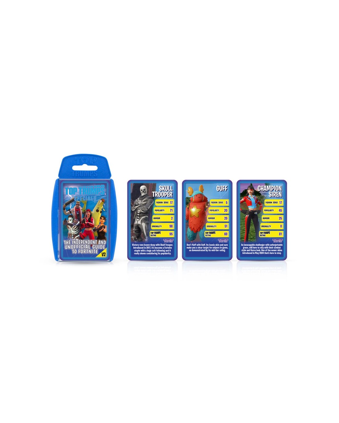 Each pack features 30 iconic Fortnite skins, including fan favourites like Peely and Skull Trooper, allowing players to compare statistics such as Fashion Sense, Popularity, Humour, and Originality. The game encourages friendly competition and strategic planning, making it suitable for players aged 5 and above.