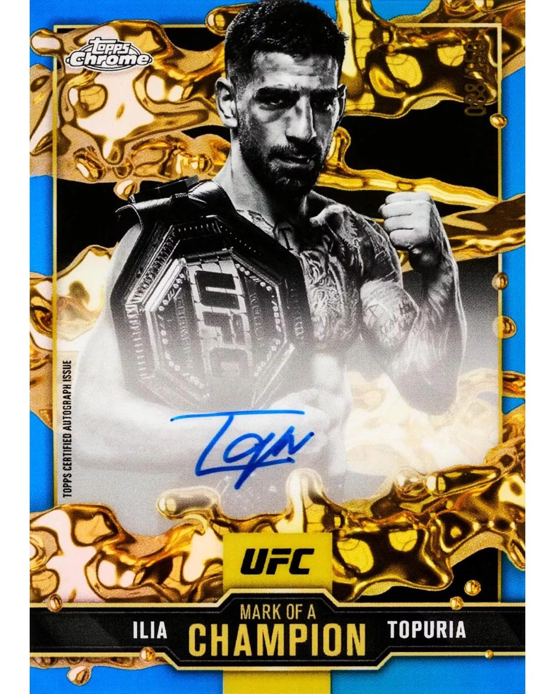 Three Base Card Refractors Per Box! Four Base Card Sepia Refractors Per Box! Look for Chrome Rookie Autographs! Find Allen & Ginter Inserts! Collect the 200-Card Base Set! Assu Almabayev Reinier de Ridder Vitor Petrino Joshua Van Stephen Erceg Ailin Perez Roman Kopylov Jean Matsumoto Waldo Cortes Acosta Payton Talbott Kai Asakura Eduarda Moura Gabriel Bonfim Carlos Prates Luana Santos Marcus McGhee Melissa Mullins Islam Makhachev Ilia Topuria Merab Dvalishvili Alexander Volkanovski Magomed Ankalaev Dricus Du Plessis Tom Aspinall Jack Della Maddalena Jon Jones Khamzat Chimaev Sean O'Malley Alex Pereira Diego Lopes Paddy Pimblett Dustin Poirier Khabib Nurmagomedov Charles Oliveira Jiri Prochazka Bo Nickal Conor McGregor Belal Muhammad Justin Gaethje Each Box contains Three Base Card Refractors or Prism Parallels and Four Base Card Sepia Refractors, on average! Topps Chrome UFC is back for another year featuring the top fighters to embrace the Octagon. Experience the high-octane action from pack to pack, featuring a wide plethora of autographs, inserts, refractors and new case hit inserts! Collect the entire 200-card Base Set featuring stars from the past, present, and future across a rainbow of color and tech parallels! Look for randomly inserted autographs! PRODUCT BREAKDOWN: BASE CARDS: 200 base cards highlighted by a mixture of top rookie talent and veteran stars! Base Set Parallels: Refractor- 1:6 Packs Prism Refractor- 1:3 Packs Speckle Refractor - 'd to 250 Aqua Refractor - 'd to 199 Blue Refractor - 'd to 150 Green Refractor - 'd to 99 Blue Wave Refractor - 'd to 75 Gold Refractor - 'd to 50 Orange Refractor - 'd to 25 Black Refractor - 'd to 10 Red Refractor - 'd to 5 Superfractor - 'd 1 of 1 Sepia Refractors - 4 per box - Value Box Exclusive! INSERT CARDS: RETAIL EXCLUSIVE INSERTS: ALLEN & GINTER: 1:3 packs FIRED UP: 1:4 packs TOP OF THE CLASS: 1:5 packs PLEXUS: 1:7 packs DARE TO BE GREAT: 1:12 packs Above Insert Parallels: Refractor Blue Refractor - 'd to 150 Green Refractor - 'd to 99 Red, White, & Blue Refractor - 'd to 88 Gold Refractor - 'd to 50 Orange Refractor - 'd to 25 Black & Gold Refractor - 'd to 8 Red Refractor - 'd to 5 SuperFractor - 'd 1-of-1 SP INSERTS TITANS: 1:120 packs AUTOGRAPHS: OCTAGON LEGENDS AUTOGRAPHS FUTURE STARS AUTOGRAPHS UFC SIGNATURES MARK OF A CHAMPION AUTOGRAPHS Above Insert Parallels: Green Refractor - 'd to 99 Gold Refractor - 'd to 50 Orange Refractor - 'd to 25 Black Refractor - 'd to 10 Red Refractor - 'd to 5 SuperFractor - 'd 1-of-1 CHROME VETERAN AUTOGRAPHS: Refractor - 'd to 199 Green Refractor - 'd to 99 Gold Refractor - 'd to 50 Orange Refractor - 'd to 25 Black Refractor - 'd to 10 Red Refractor - 'd to 5 SuperFractor - 'd 1-of-1 CHROME ROOKIE AUTOGRAPHS: Refractor - 'd to 199 Blue Refractor - 'd to 150 Green Refractor - 'd to 99 Gold Refractor - 'd to 50 Orange Refractor - 'd to 25 Black Refractor - 'd to 10 Red Refractor - 'd to 5 SuperFractor - 'd 1-of-1