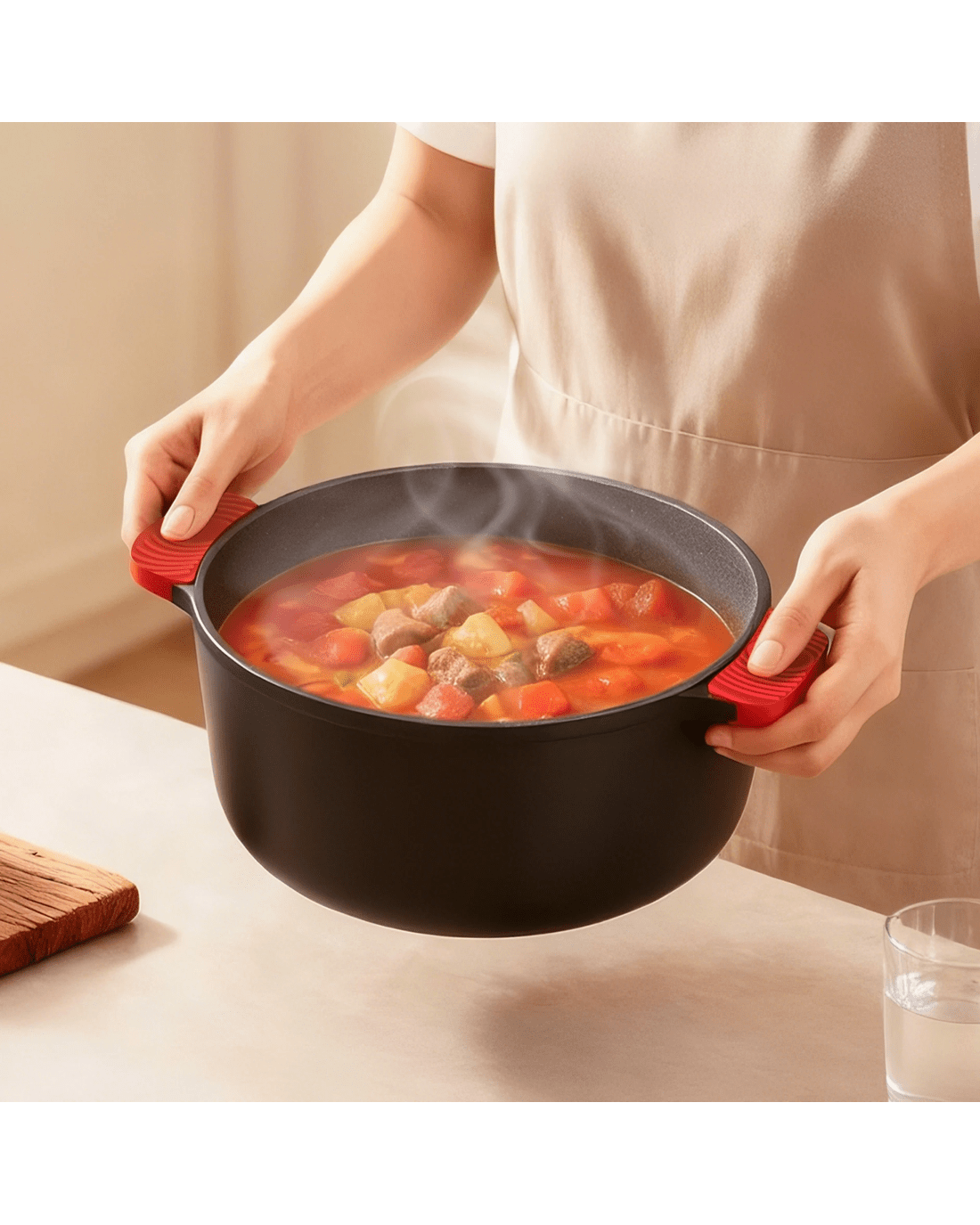 The Toque cast iron casserole features a sturdy lid and stable side handles, ensuring safe lifting and smooth stovetop handling. Its premium surface acts like a non stick pot after proper seasoning, giving you a smoother cooking experience. Compatible with gas, ceramic, electric and induction cooktops, this versatile induction cookware supports multiple cooking styles across any stovetop pot setup.
