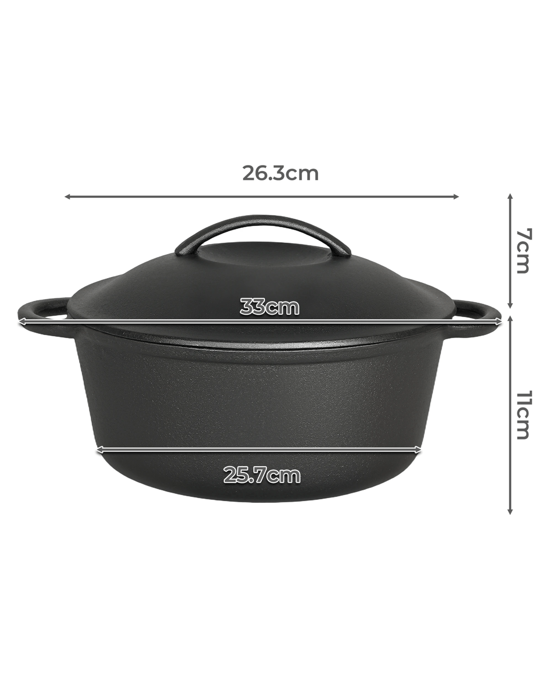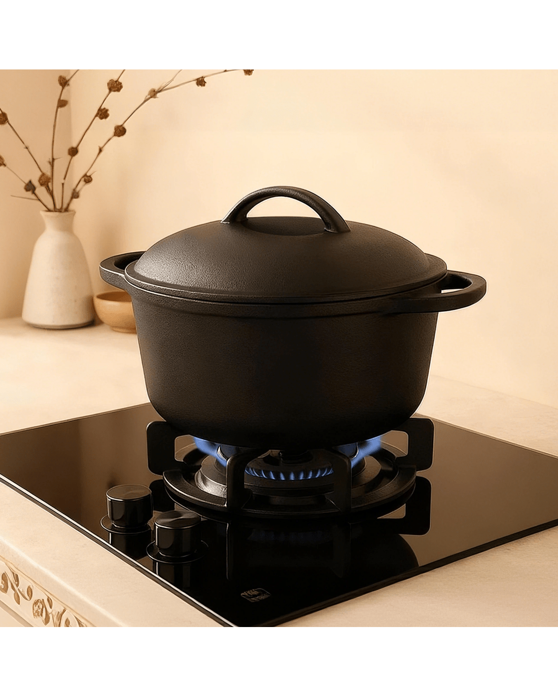 Discover exceptional cooking performance with the Toque 6.6L cast iron pot, designed for home kitchens, outdoor meals, and everyday family use. Built from durable heavy-duty cast iron, this black cast iron cookware provides even heat distribution and long-lasting heat retention, making it ideal for slow cooking, roasting, stewing and more. The spacious design delivers the convenience of a large capacity pot, perfect for gatherings or camp meals.