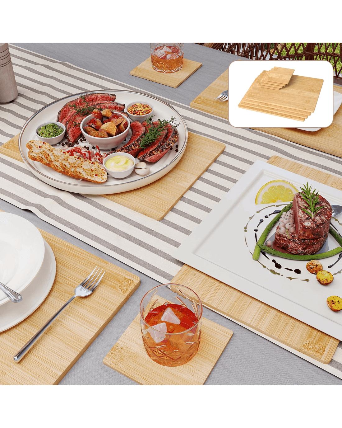 Perfect for everyday dining, parties, or as a gift, this versatile bamboo mat set combines functionality with natural beauty. Whether you need bamboo placemats and coasters for your family table or elegant bamboo coasters for entertaining guests, this natural bamboo placemats set is a practical and stylish choice.