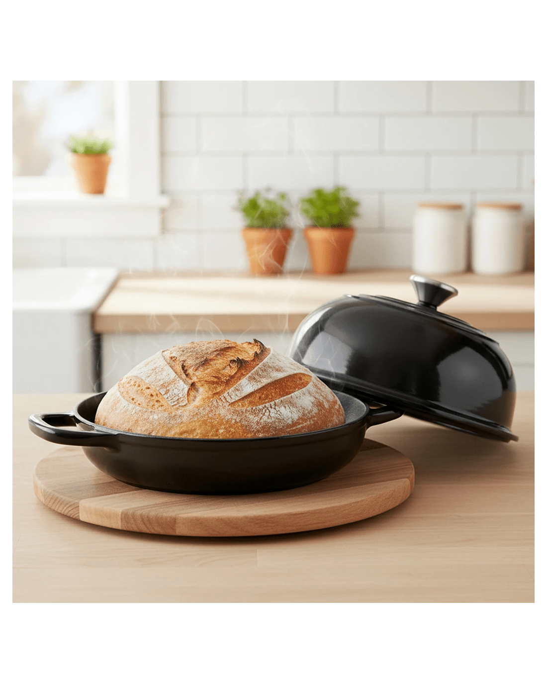 The enameled cast iron dutch oven is ideal for baking bread. Its unique lid traps steam, helping create the perfect golden, crispy crust while keeping the inside soft and moist. Whether you're an experienced baker or a beginner, this dutch oven for bread baking is your go-to solution for achieving bakery-quality results at home.