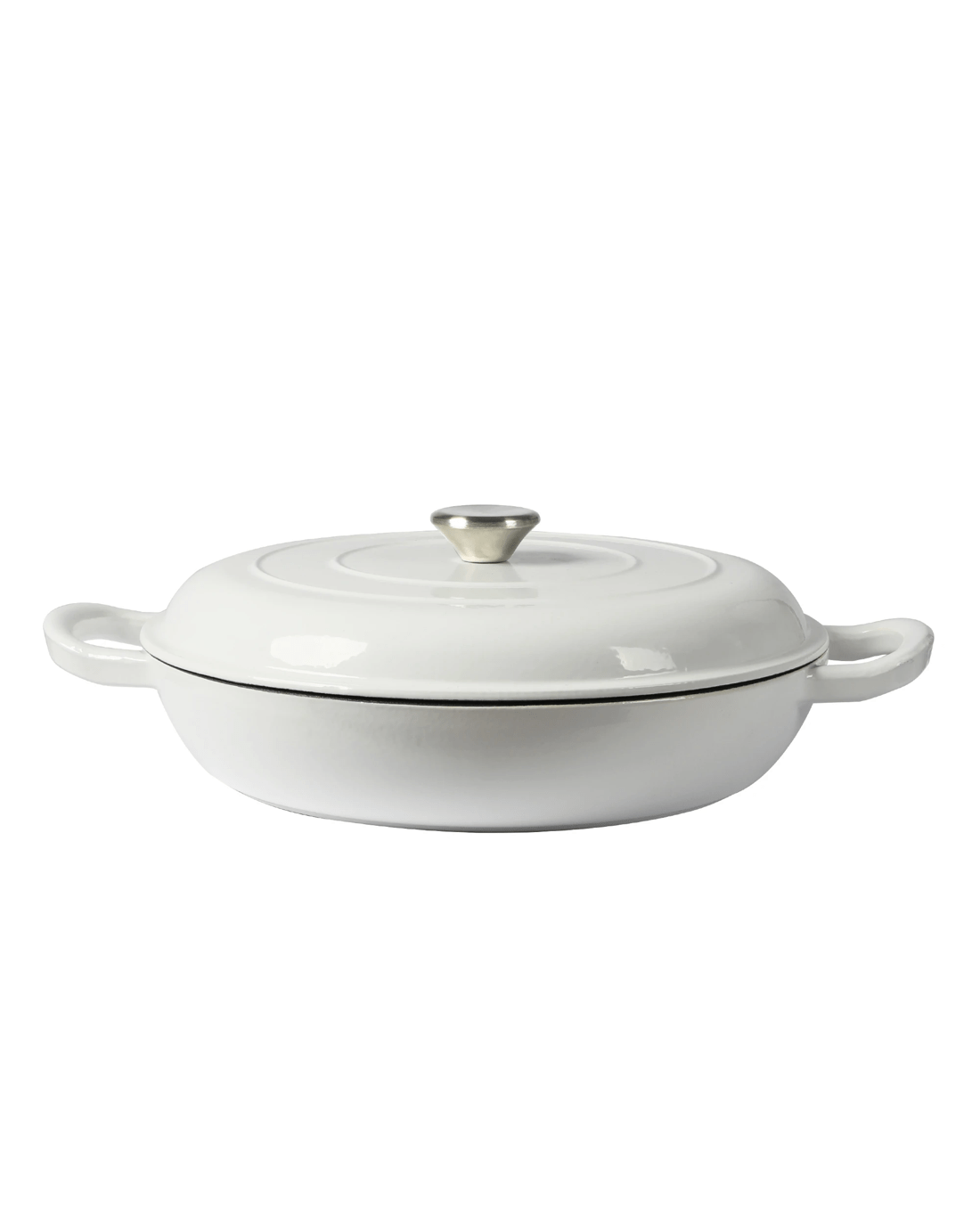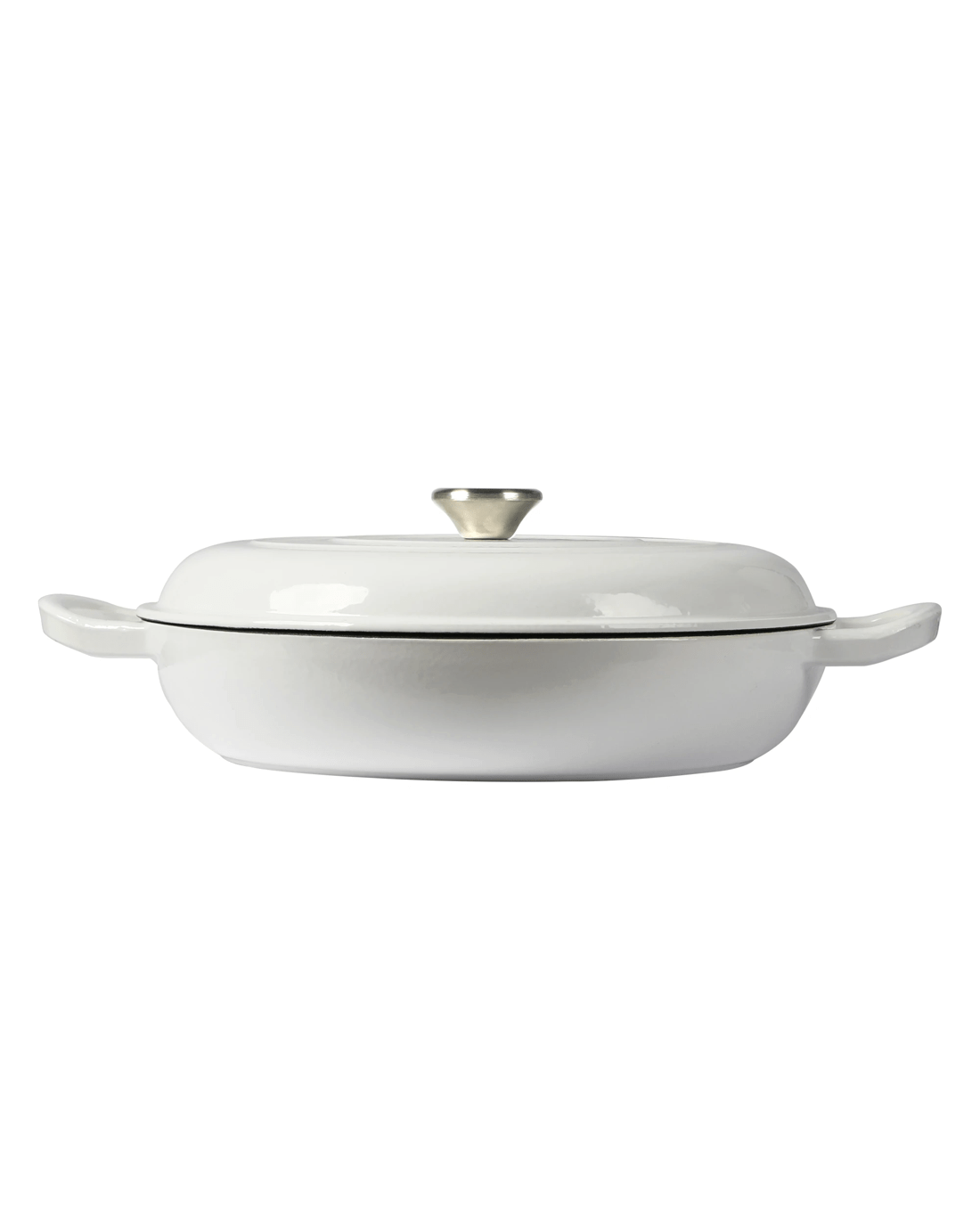 - Non-stick enamel interior for low-fat cooking
